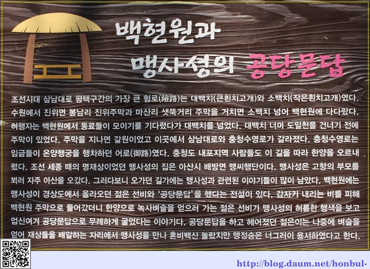 고지도를 보면 이 고개에 흰치고개라는 이름이 붙어있다. (안내문)