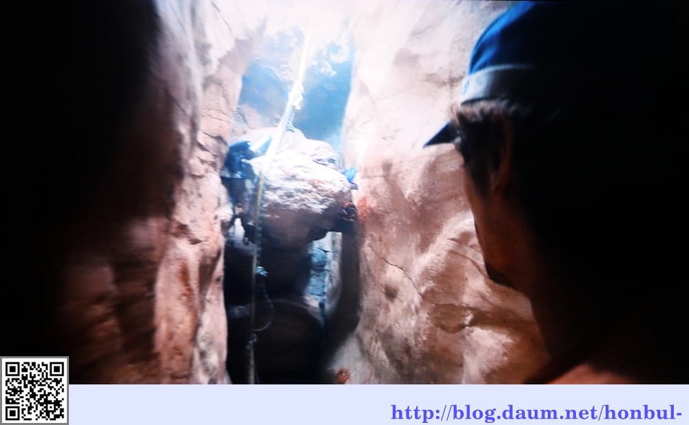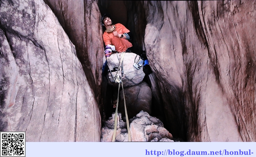 겨우 바위에 고정해 보지만 이 방법으로도 팔을 빼지 못한다.