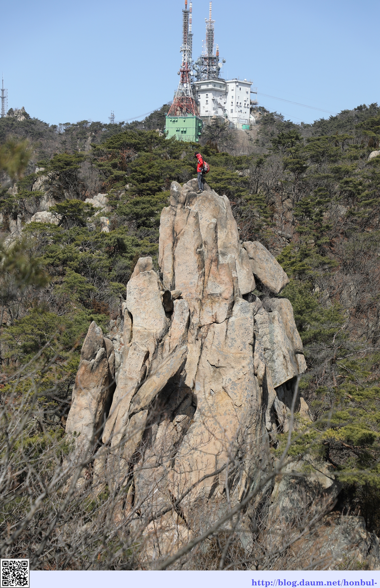 전화 통화로 갑자기 정리할 서류가 있어 빠른 귀가를 위해 이 봉우리를 끝으로 지능선을 타고