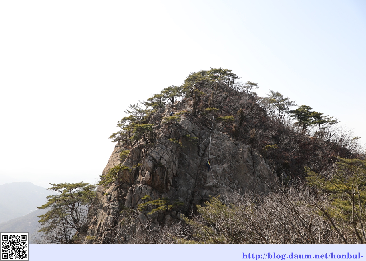 전화 통화로 갑자기 정리할 서류가 있어 빠른 귀가를 위해 이 봉우리를 끝으로 지능선을 타고