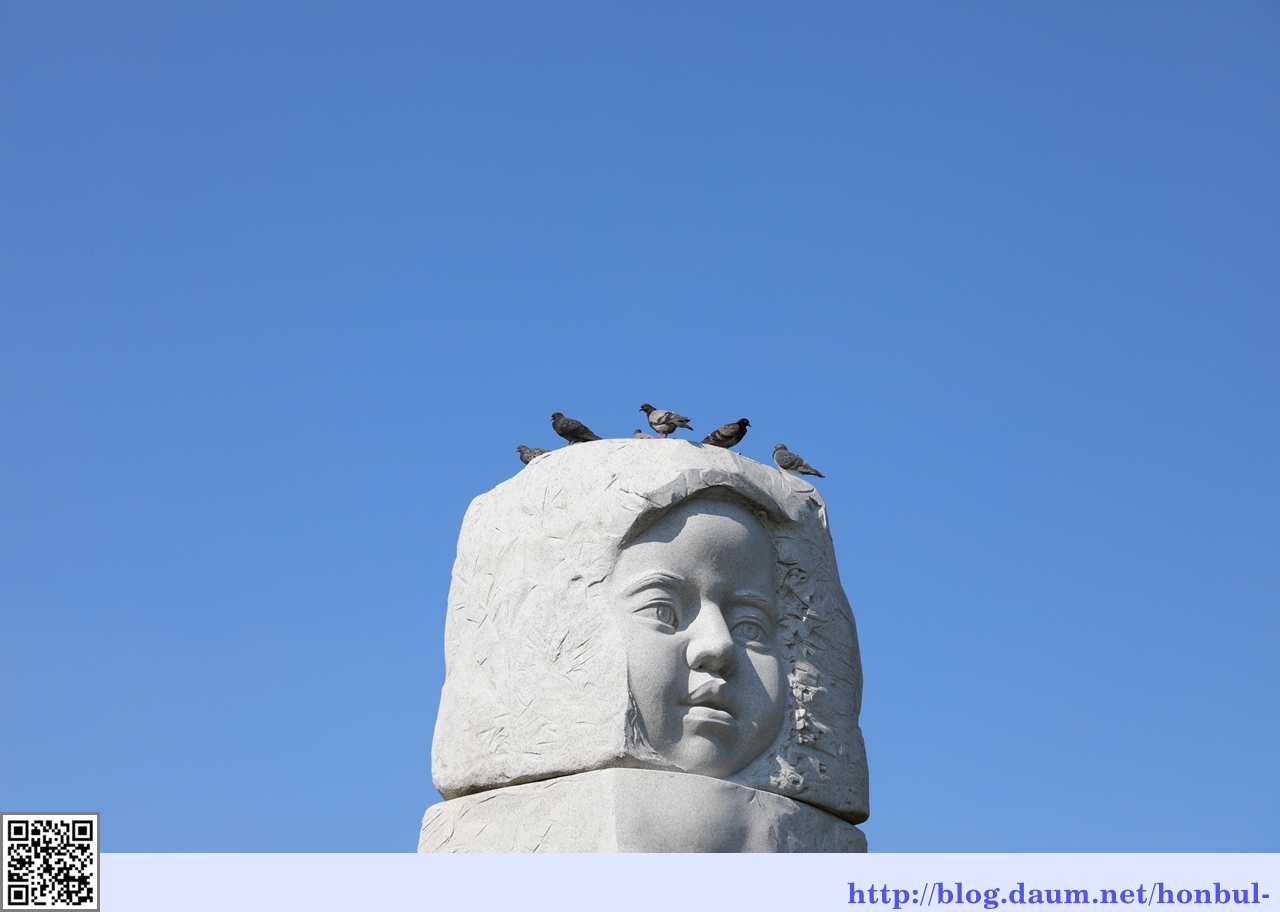 양면에 조각한 얼굴의 무심한 표정은 이곳이 약속의 땅이라는 걸 알기나 할까?