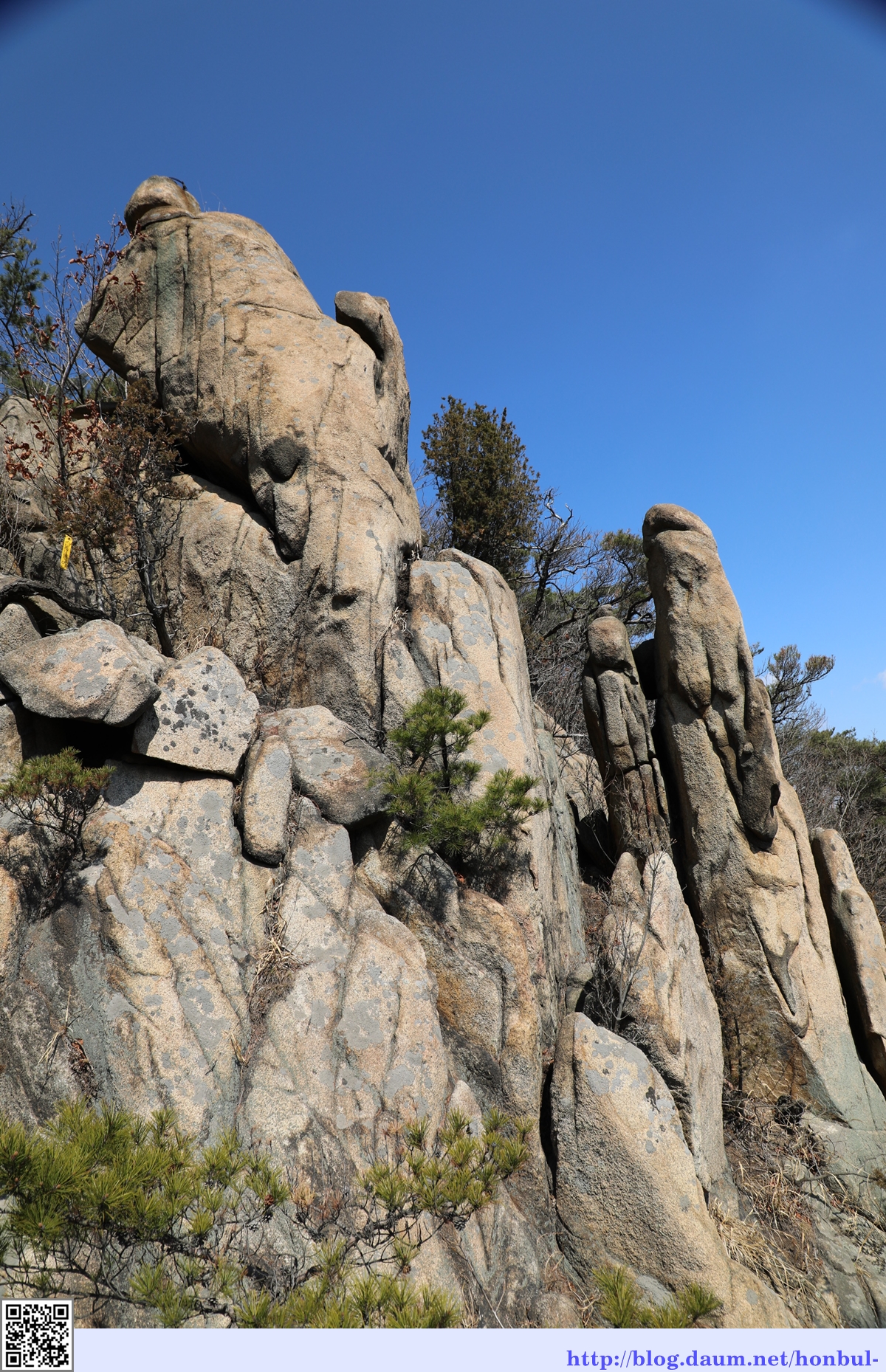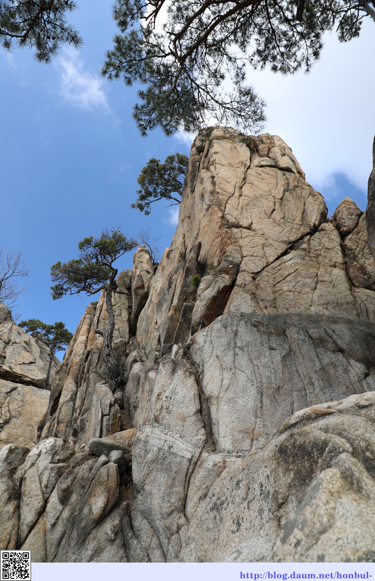 나뭇가지에 잎이 나지 않고 춥지도 않은 이때가 이곳을 오르기에 가장 좋은 시기이다.
