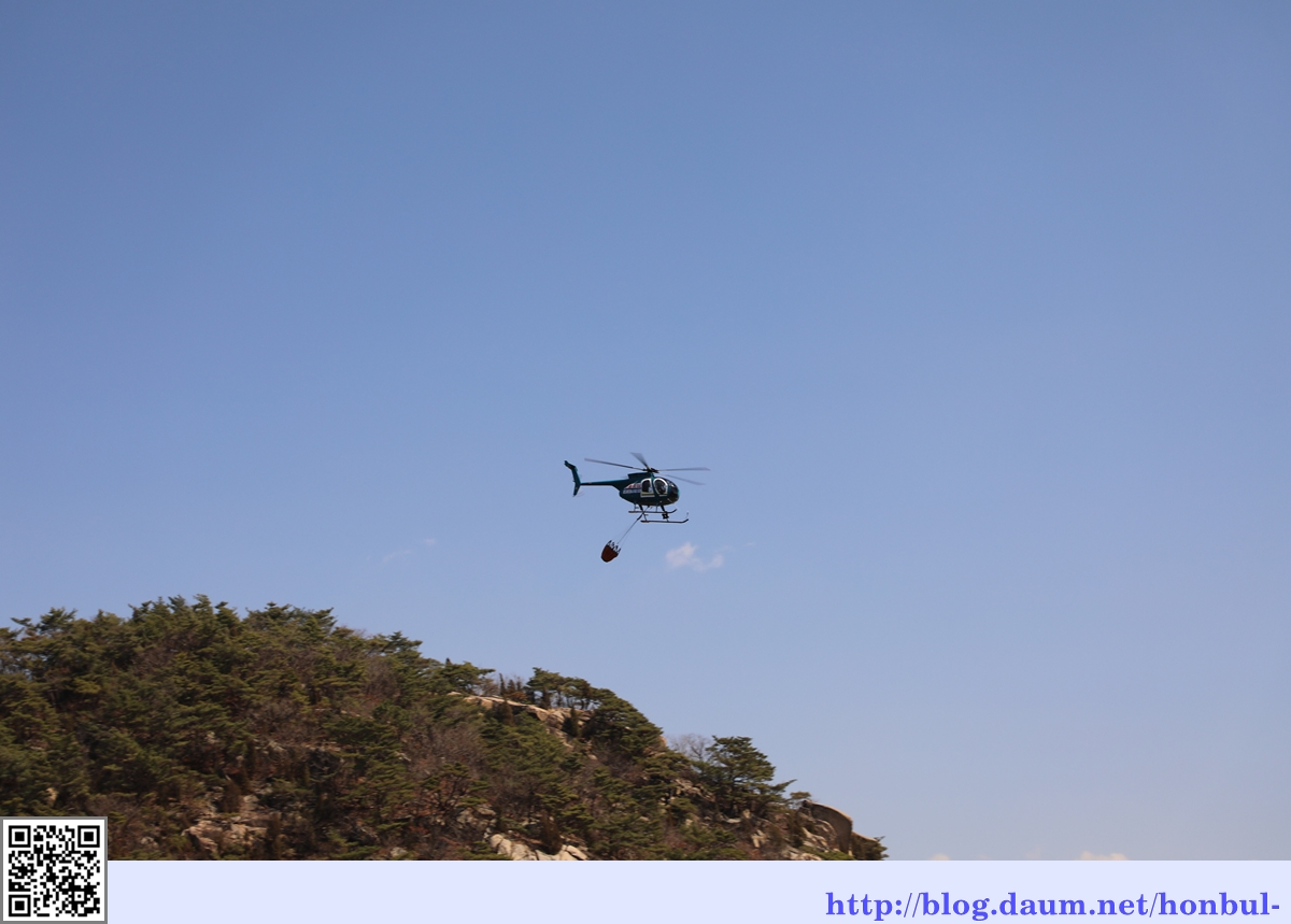 헬기가 보급물자를 실어 나르는 모양이다.