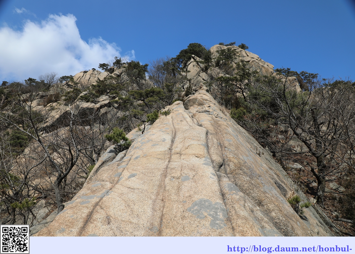 산불감시초소에서 오르기는 좀 무난한 편이나 1봉을 앞두고 오르는 이 바위도 제법 가파르다.