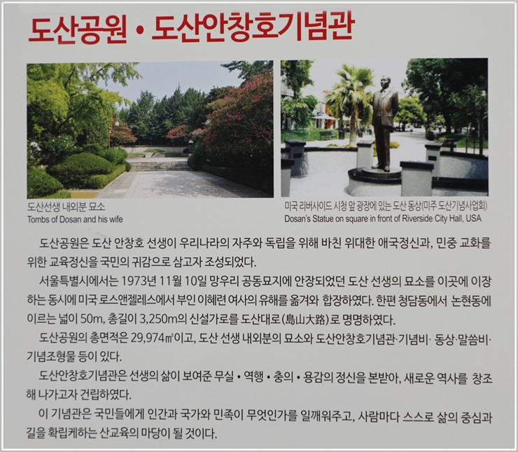 도산공원은 독립운동가인 안창호 선생을 기리는 공원으로 설립 목적은 아래와 같다.