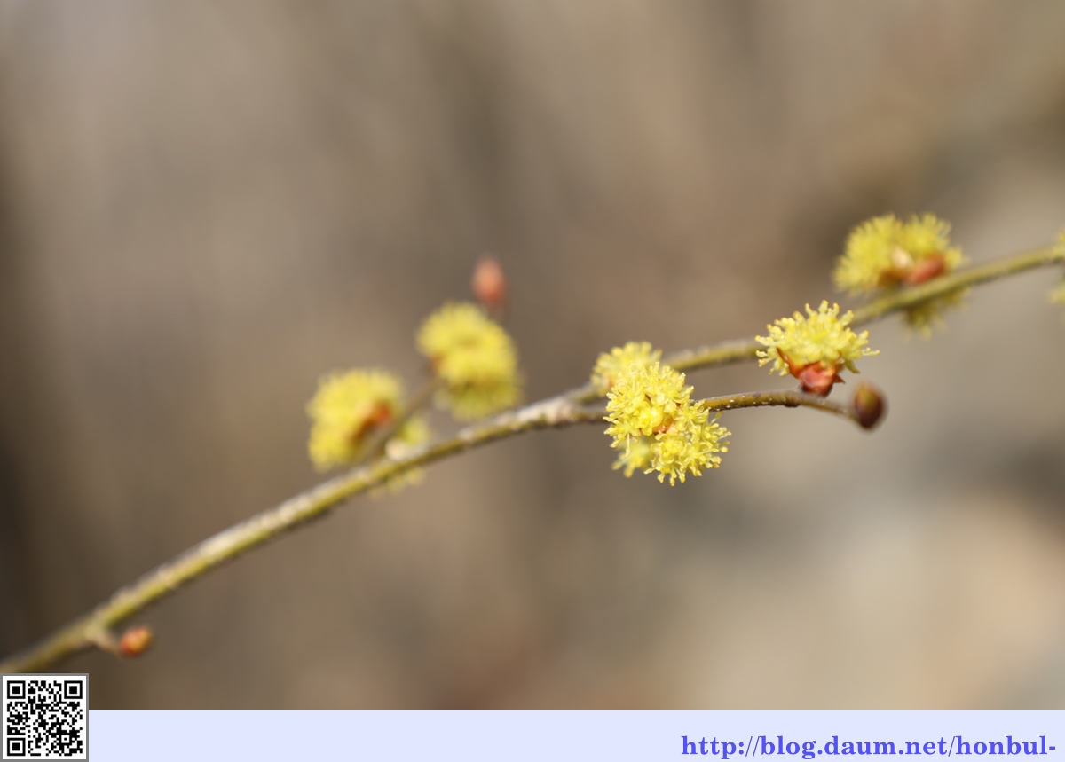 이제 막 피어난 버들에 개미 한 마리가 달라붙었다.