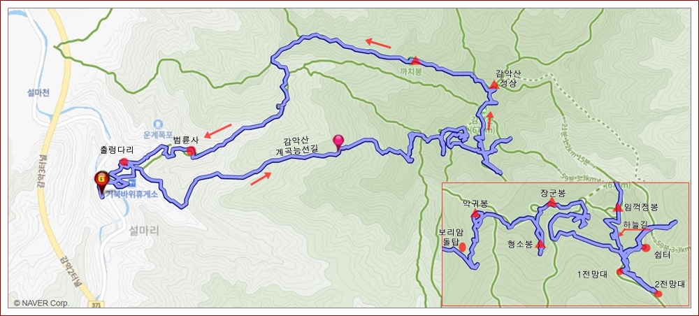 일부는 계곡을 지나 능선으로 오른다고 계곡 능선이란 이름이 생겼다.