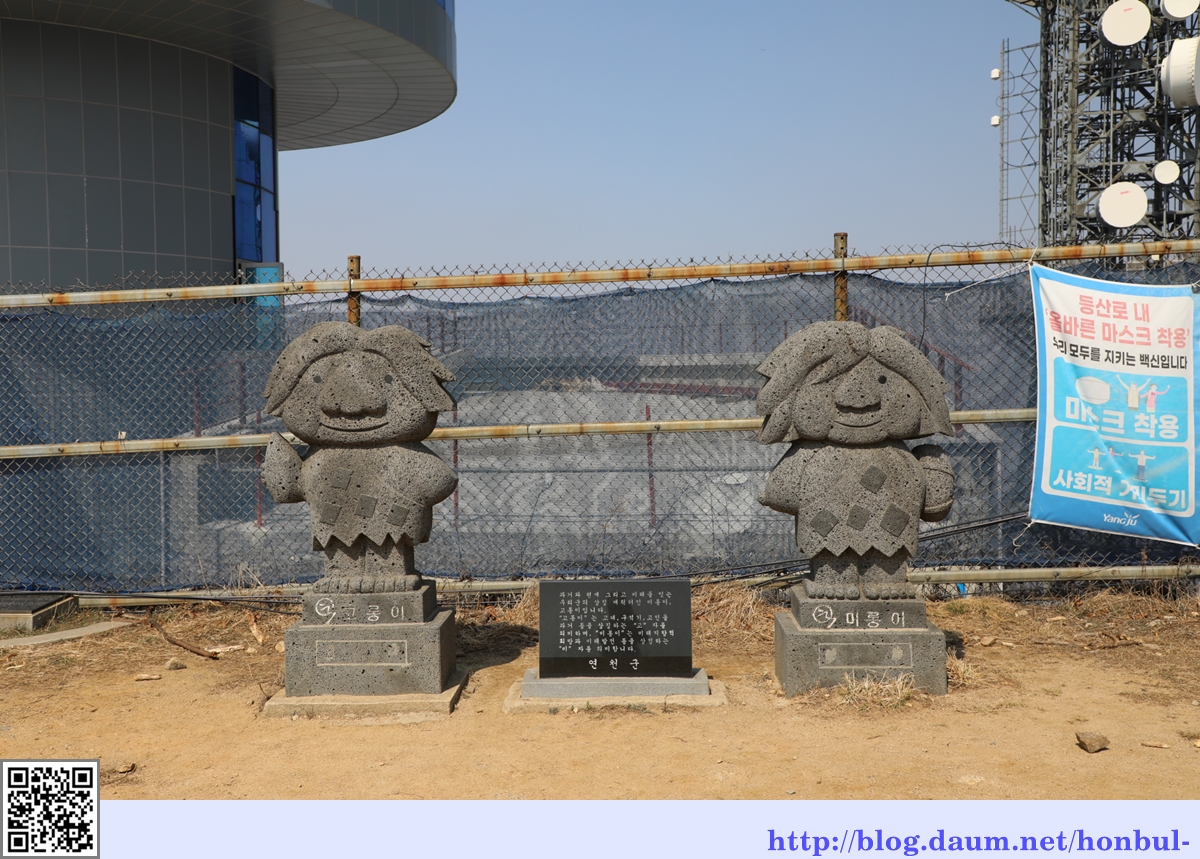 정상 한 곳에 구석기인을 형상화한 고롱이와 미롱이를 이곳에 설치했다.