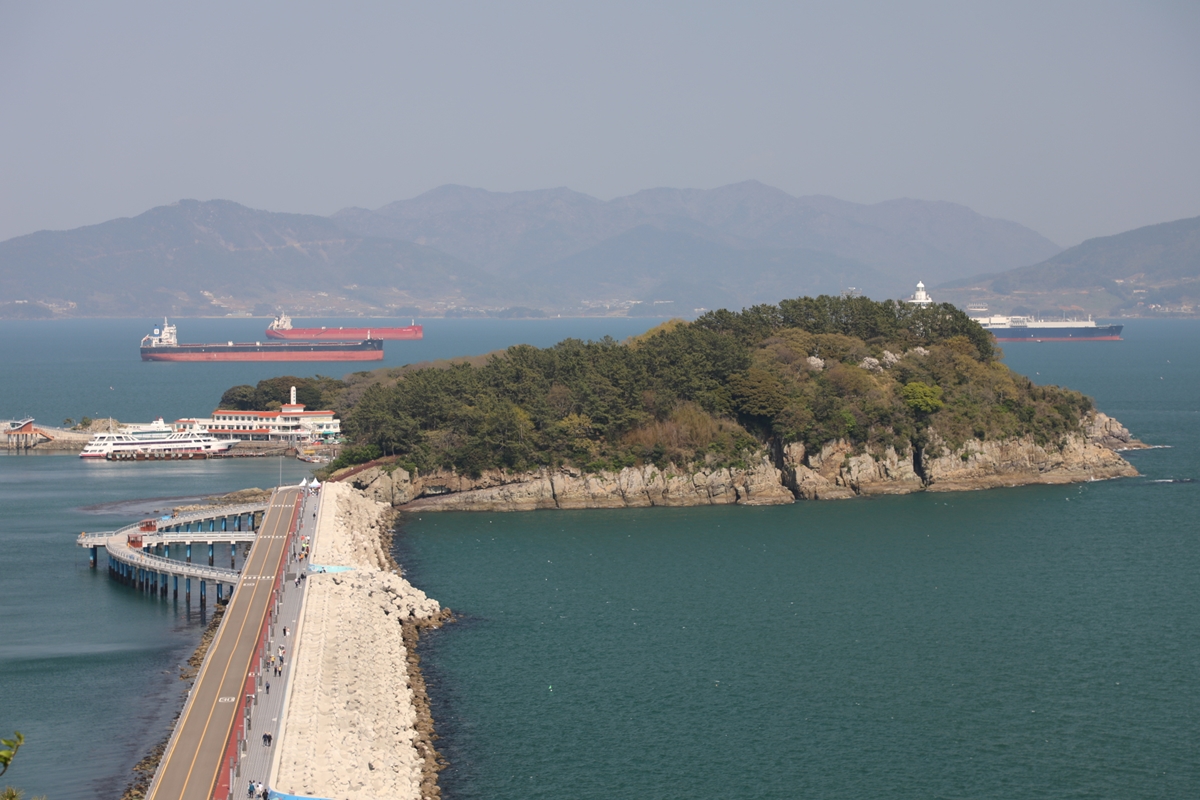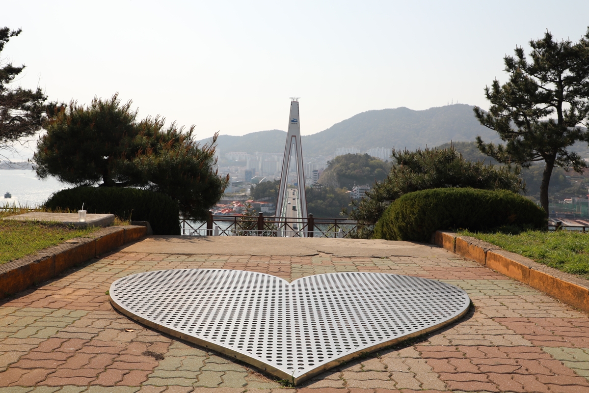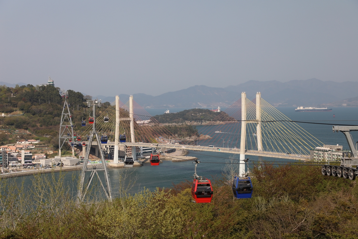 자산공원은 평지형 산정으로 여수 돌산과 연결된 1.5km 구간의 국내 첫 해상 케이블카를 놓았다.