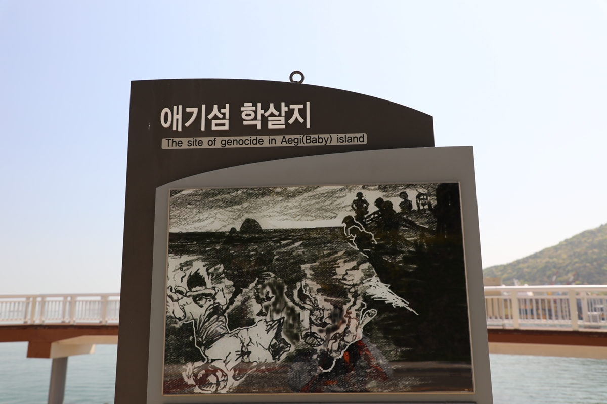 당시 특무대 관계자의 증언에 따르면 애기 섬 희생자는 약 120명 이내로 추정된다. (안내문)