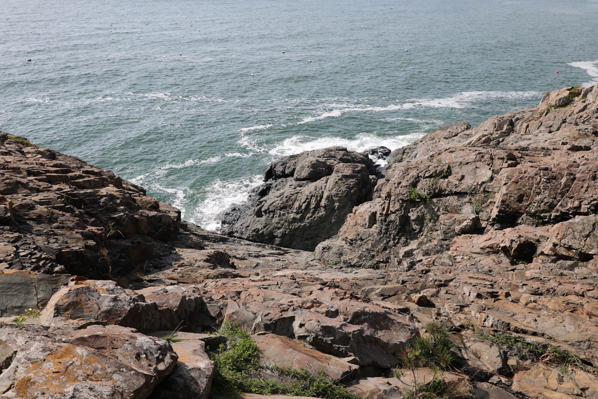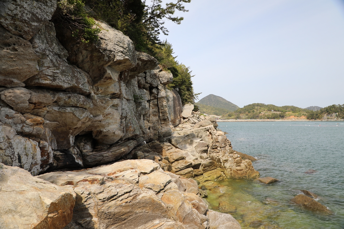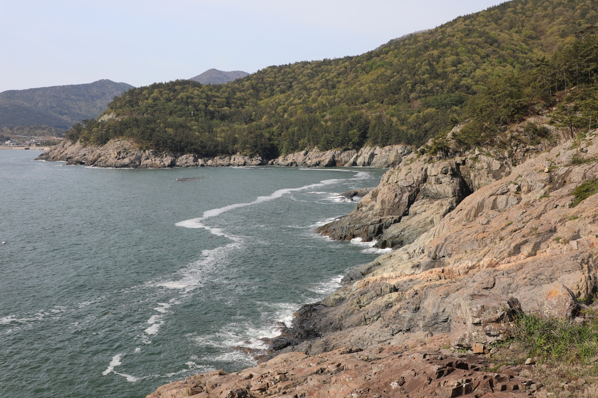 갯가길을 다니다 보면 해식이 발달한 이런 구간은 위험하므로 산으로 들어갔다가 다시 내려가야 한다.