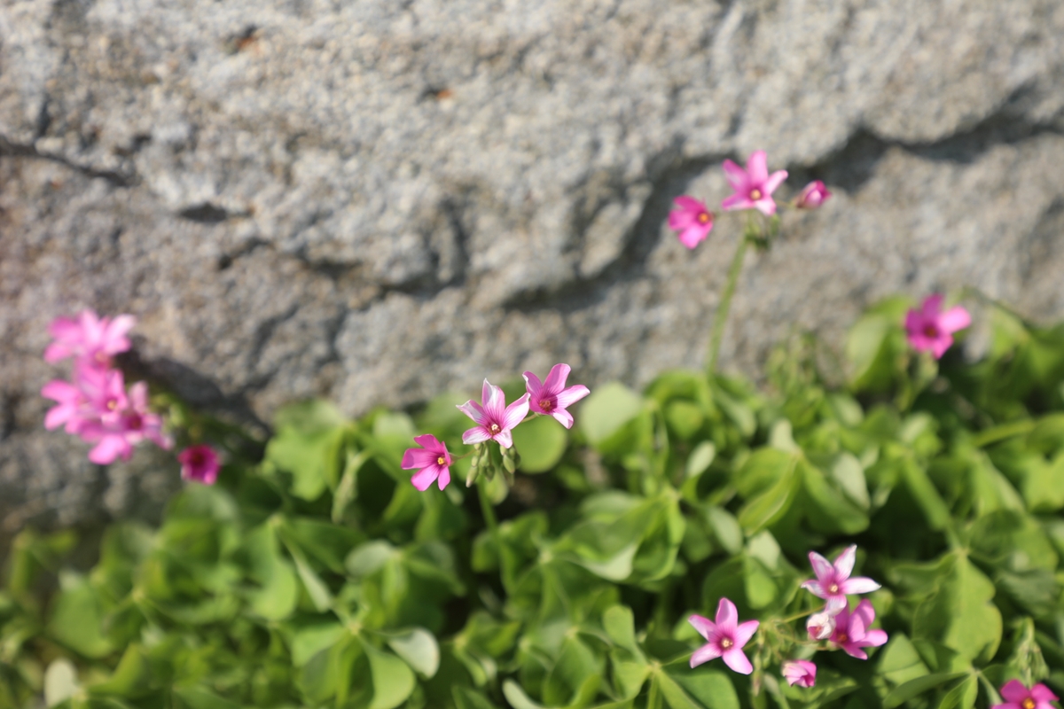 마을에 들어설 때 담장 밑에 크로바 잎처럼 생긴 식물에 크로바 꽃과 전혀 다른 앙증맞은 꽃이 폈다.