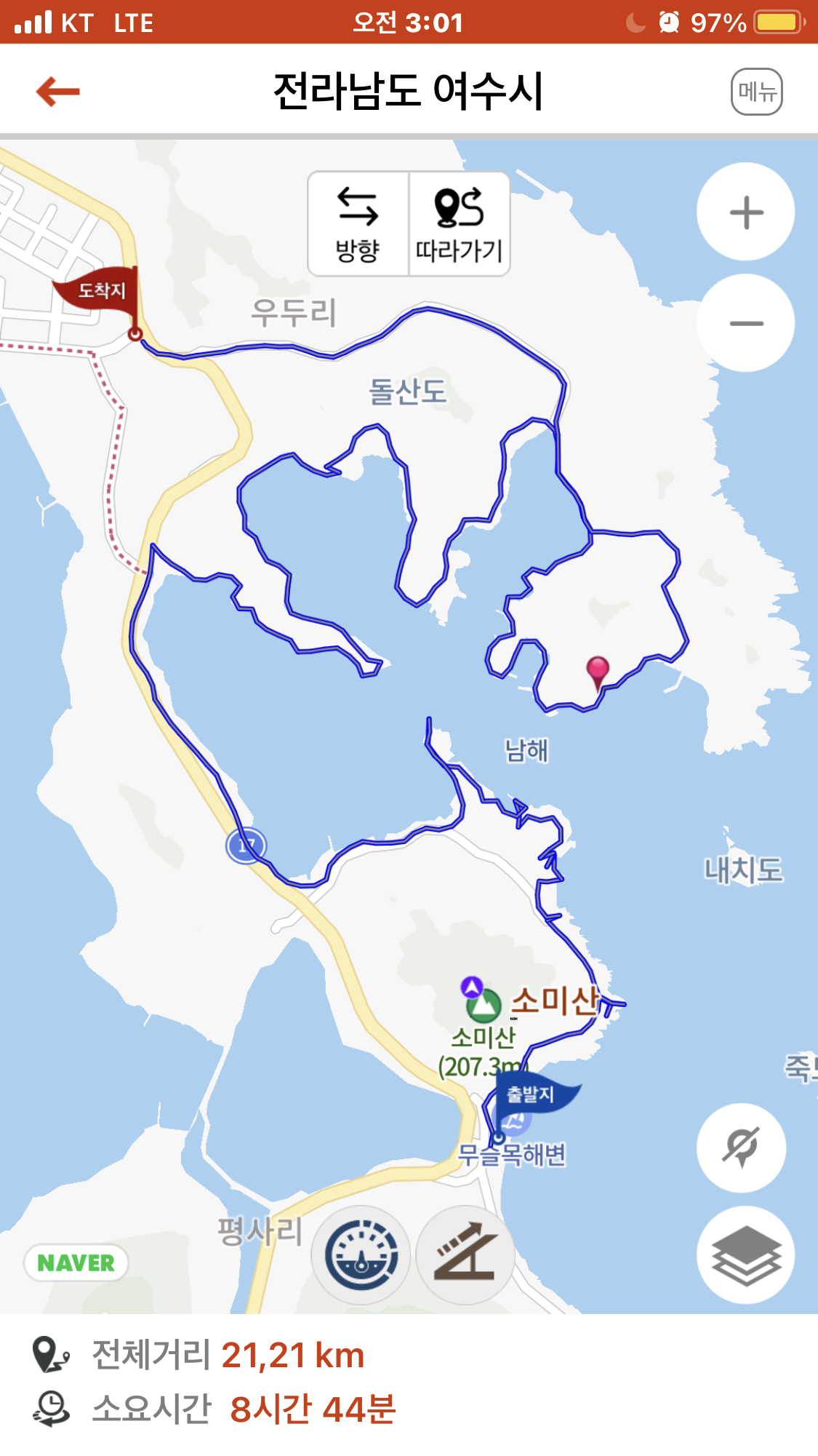 2021.4.11. (일) 8:02~16:46 (탐방 거리 21.2km, 8시간 44분 탐방). 맑음