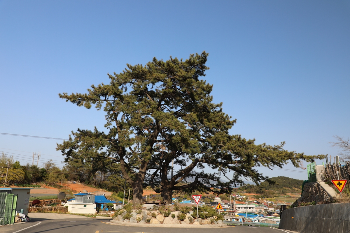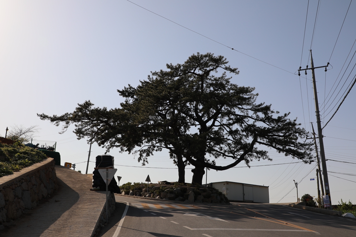 마을을 빠져나가며 보이는 소나무 두 그루가 멋지다.