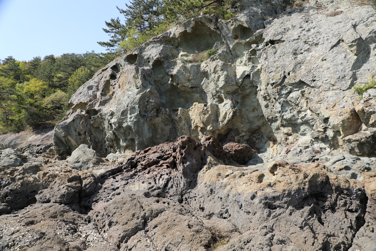 바위에 달라붙은 흙은 파도에 쓸리고 쓸려 이젠 더 내어줄 것도 없는 바위뿐이다.