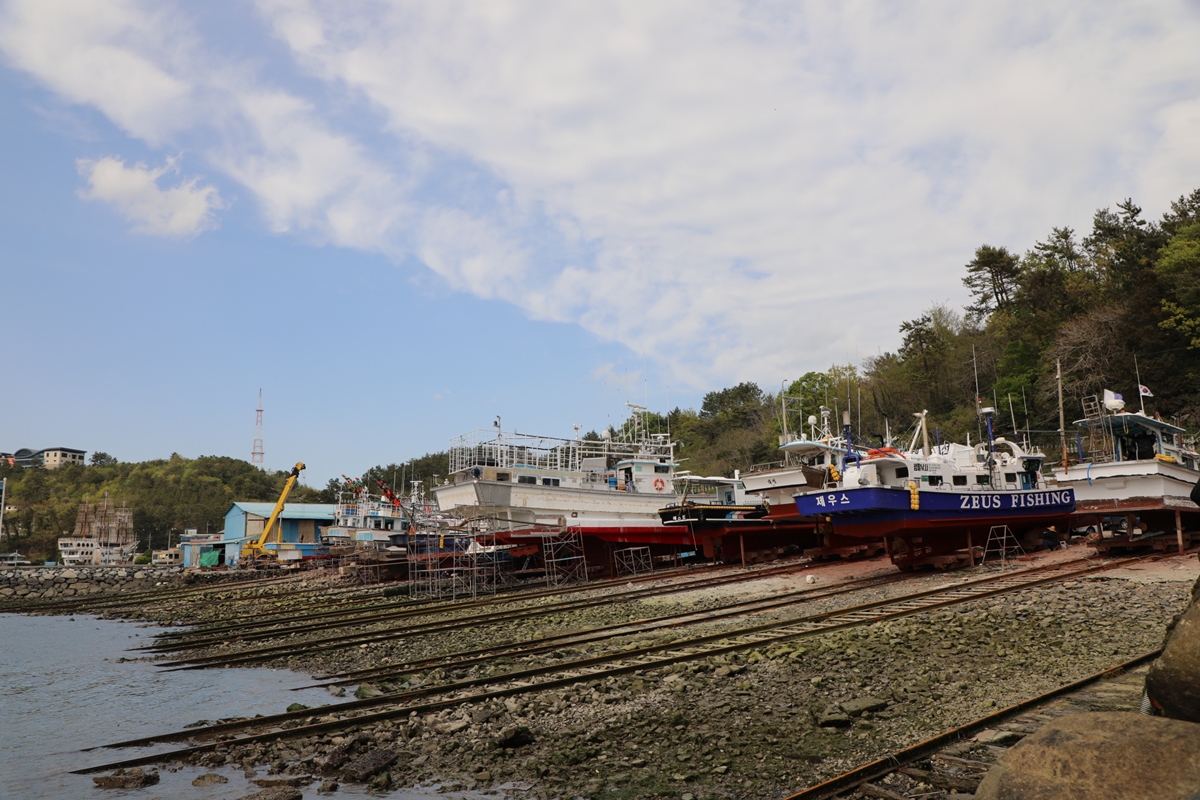 해안을 도는 데 이런 선박 수리센터가 많아 남의 사업장을 지나가기 미안했다.