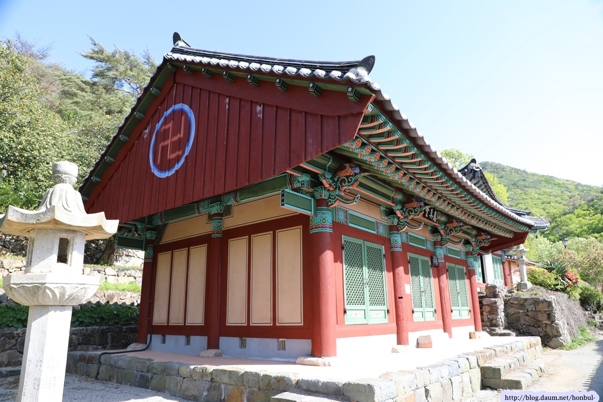 이런 점에서 대웅전 앞뜰에 있는 석등도 역시 거북 모양으로 장식되어 있다.