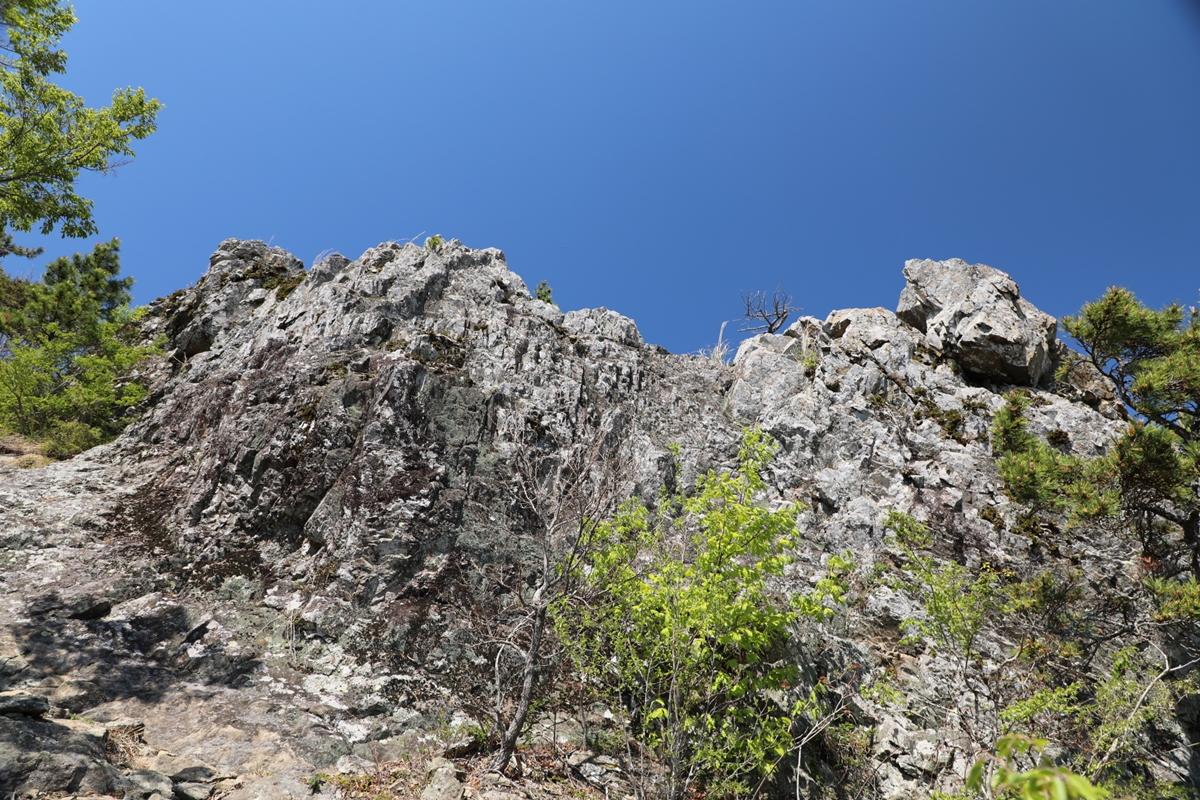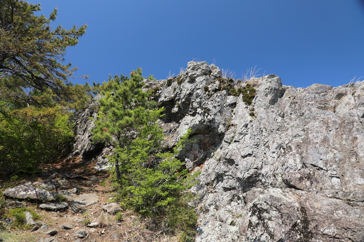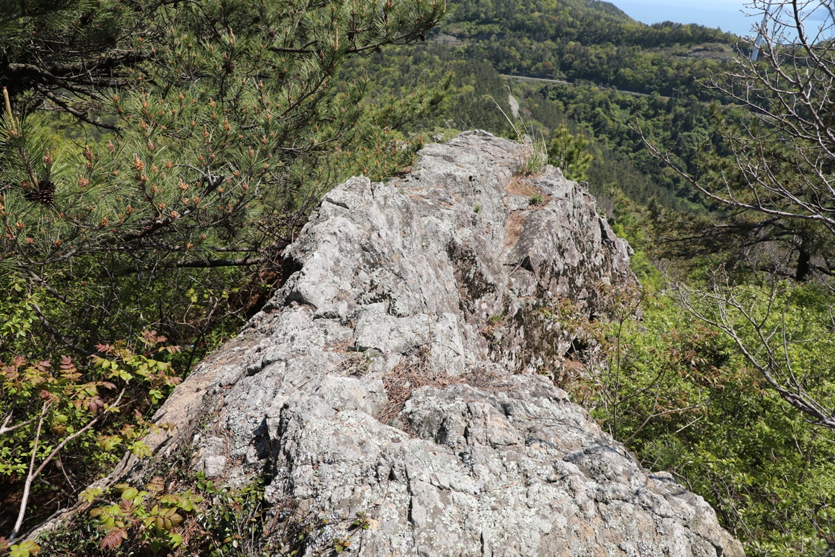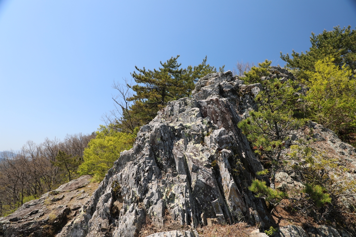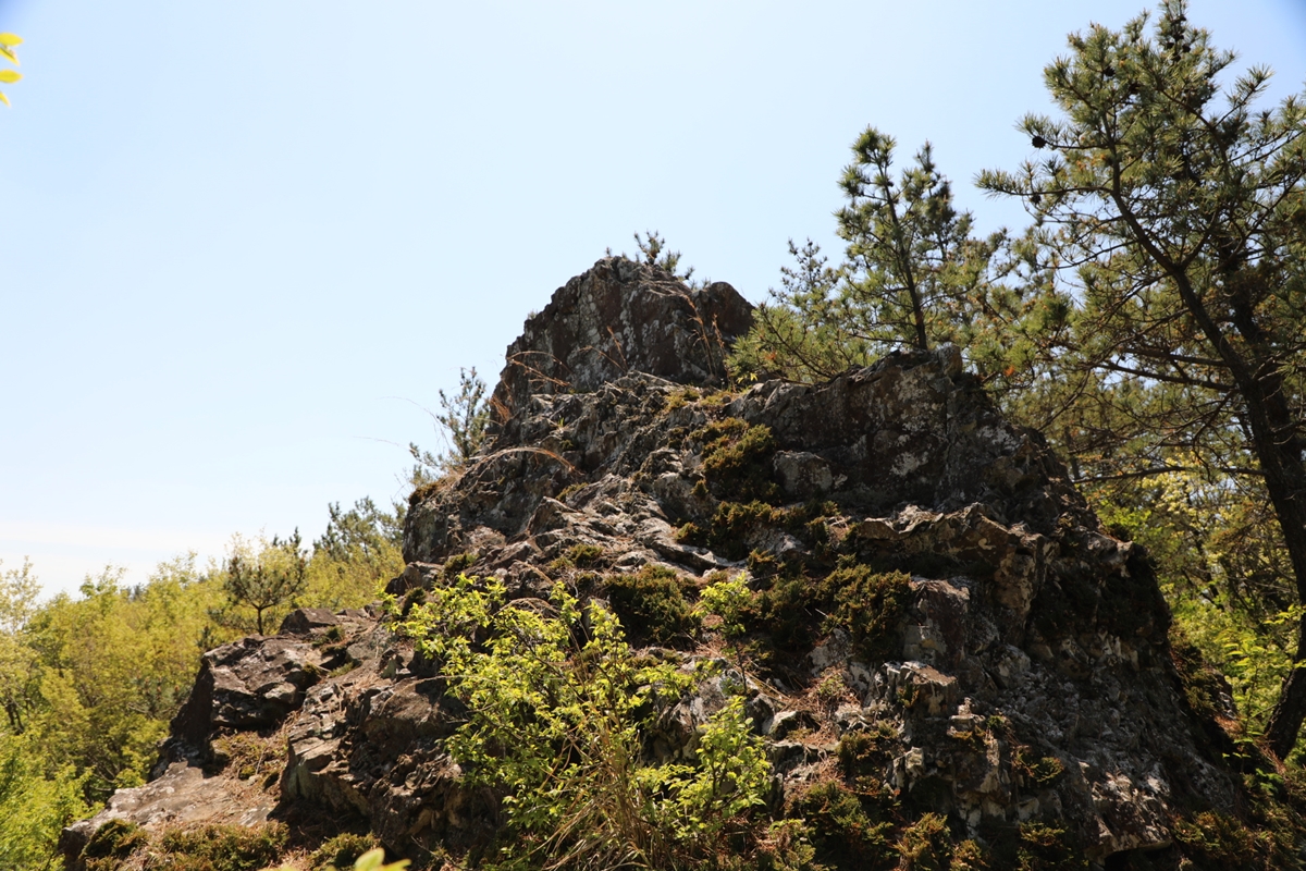 높고 기다란 모양으로 정상은 공간이 별로 없는 특이한 바위다.