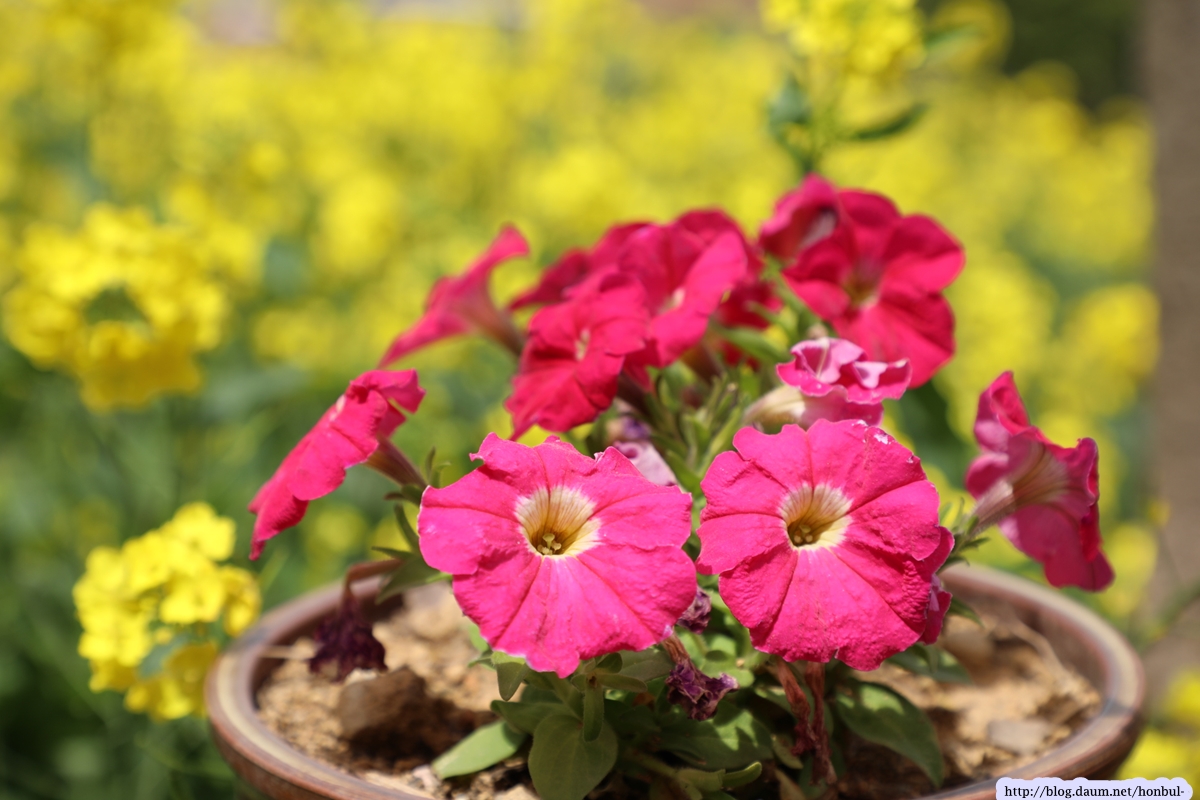 음식이 나올 때까지 주변 꽃을 배경으로 사진도 찍는다.