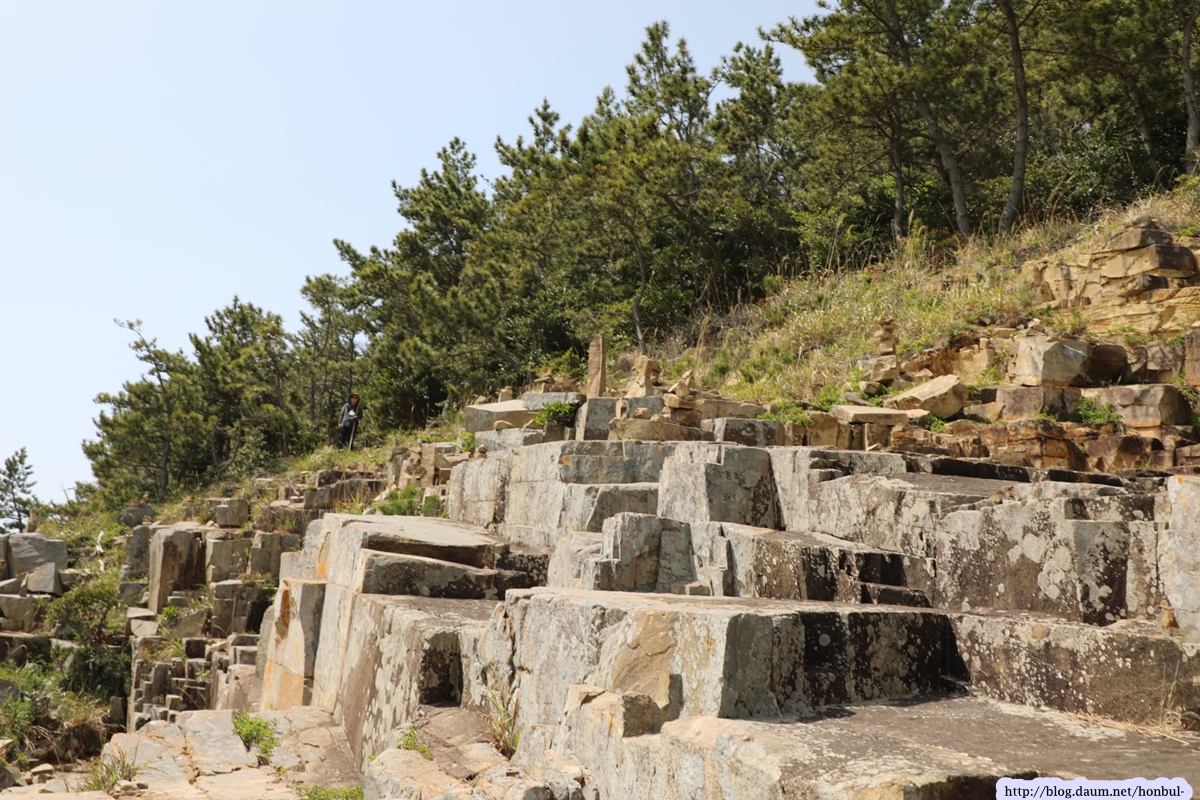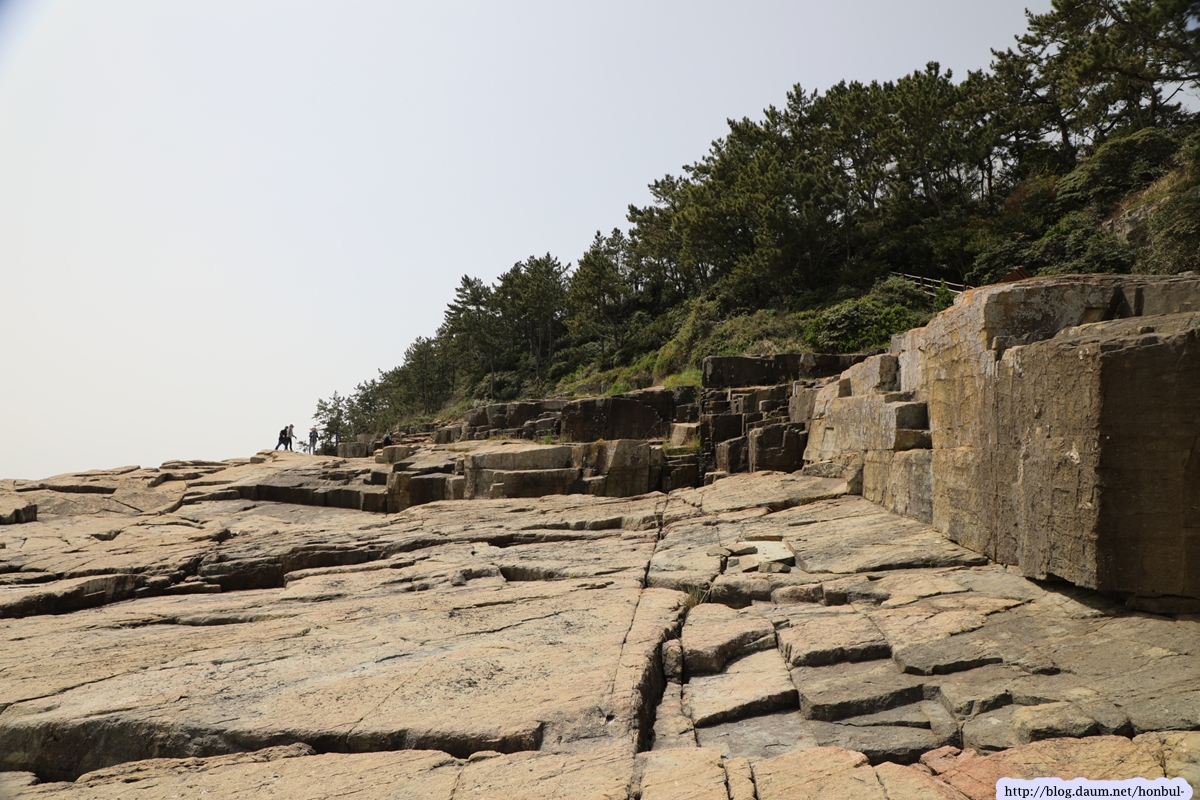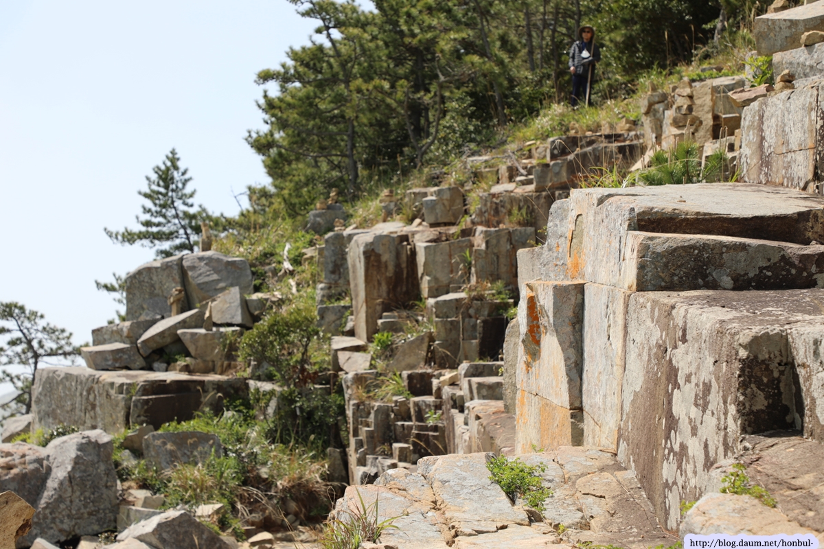 완전한 육각형은 아니로되 이것을 주상절리라 부르는 모양이다.