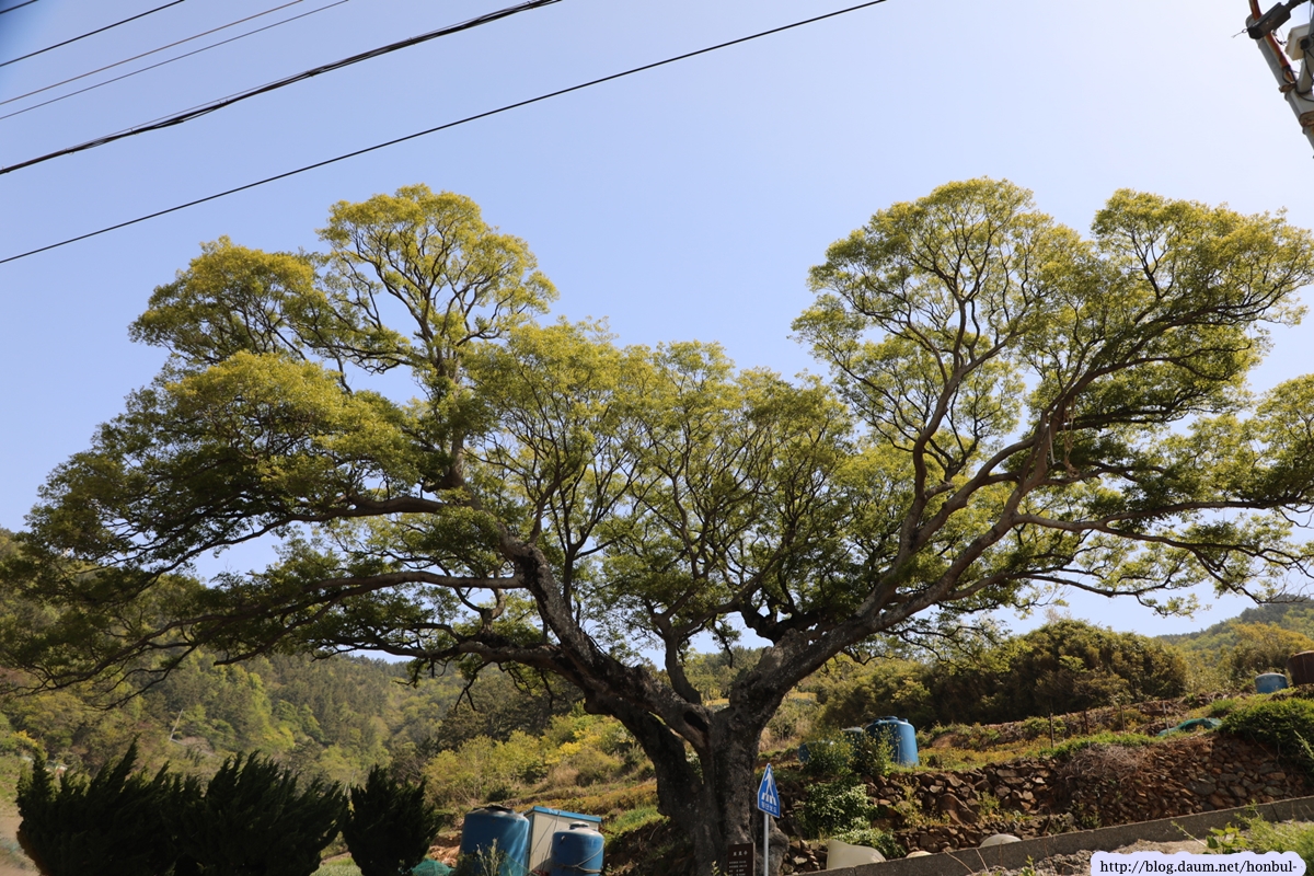 성두마을로 들어서는데 나무 모양새가 좋아 내려 보니 250여 년된 팽나무 보호수이다.