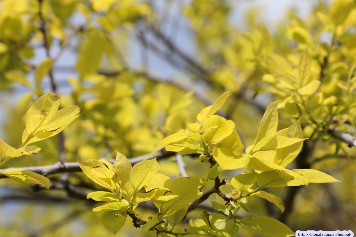 여수에서 처음으로 감나무 새순을 보며 그 아름다움에 빠졌다.