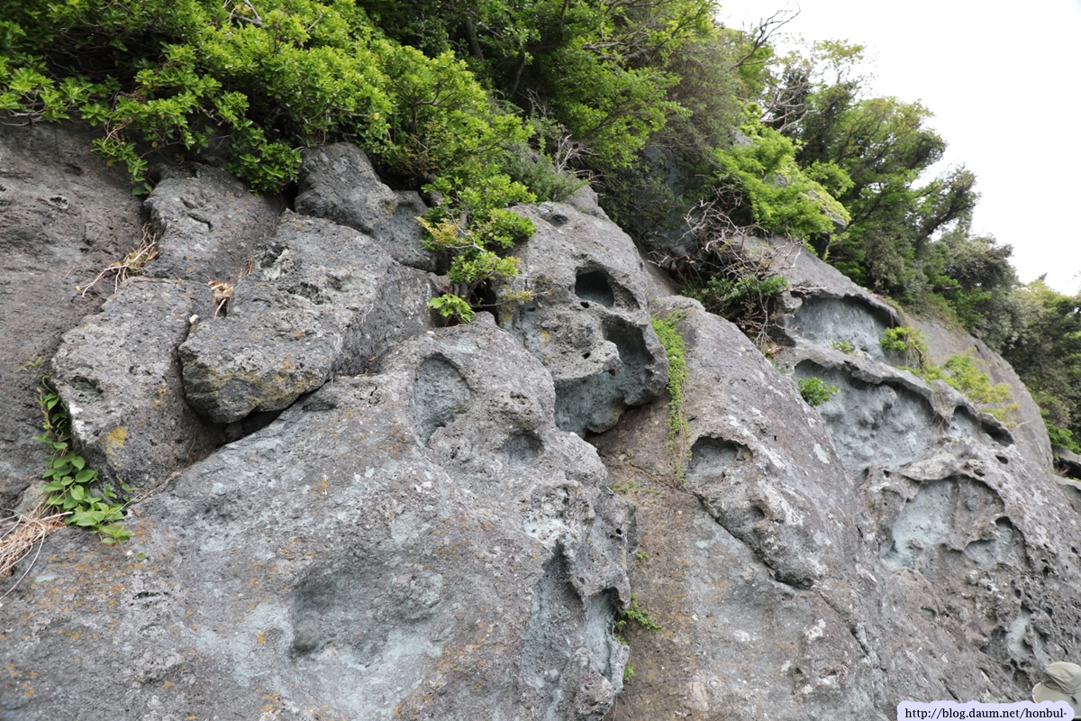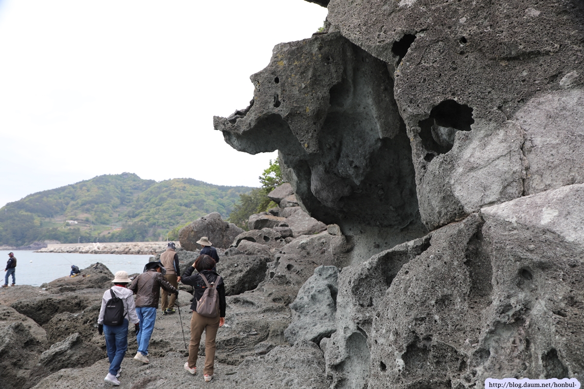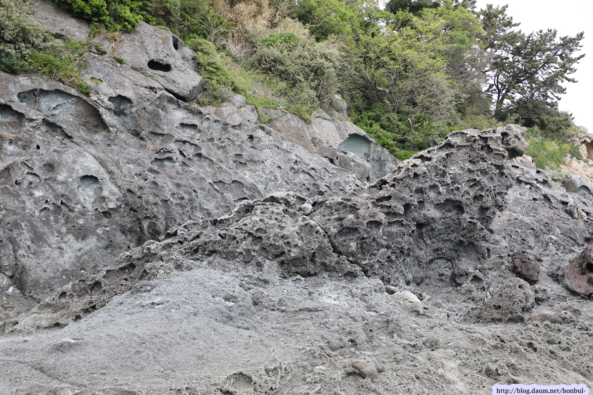 오랜 세월 비바람과 바닷물에 풍화돼 돌출되거나 구멍이 생겨 신비감을 보여준다.