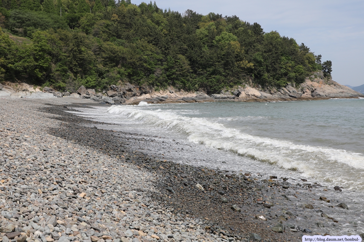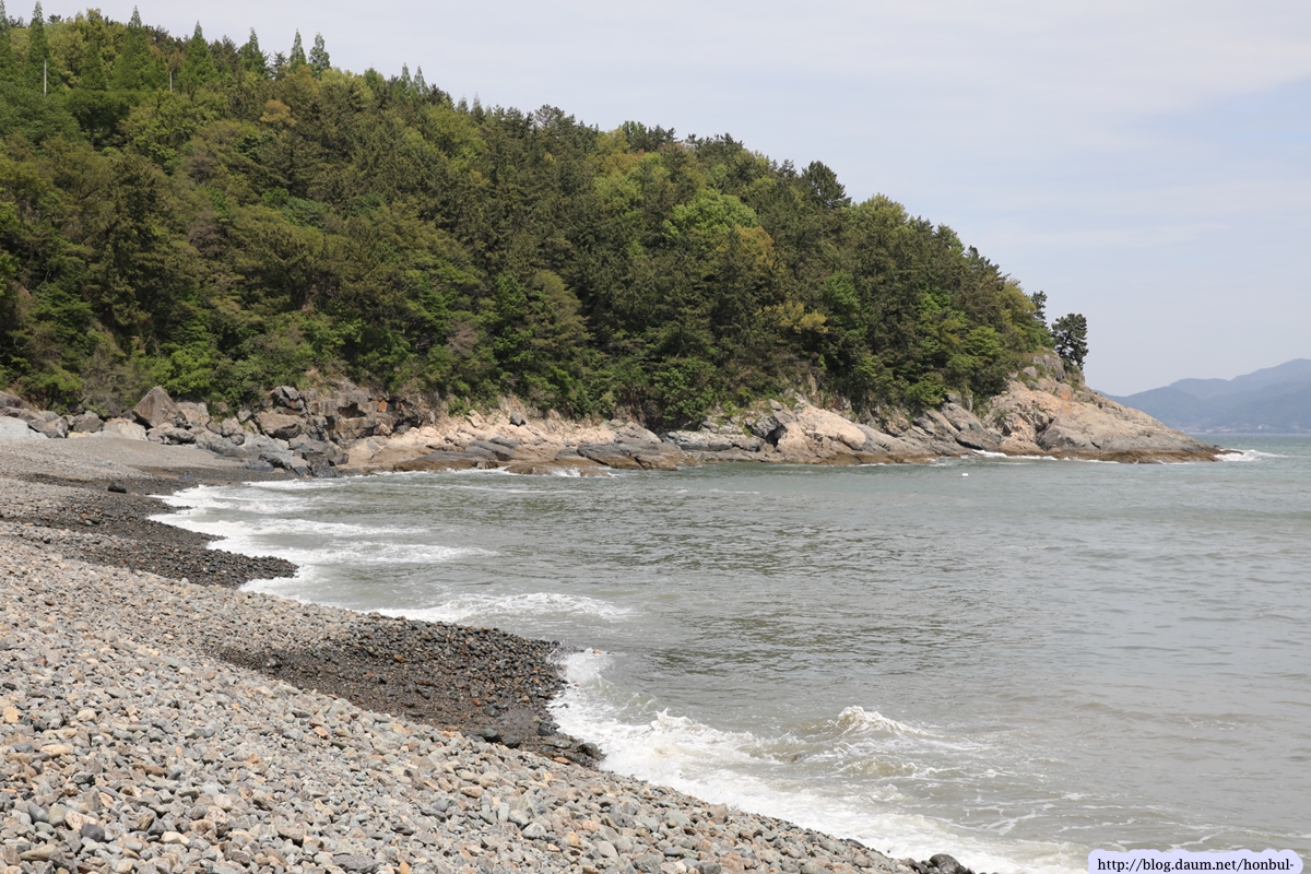 특이한 것은 북쪽으로 절반 정도는 몽돌해변이다.