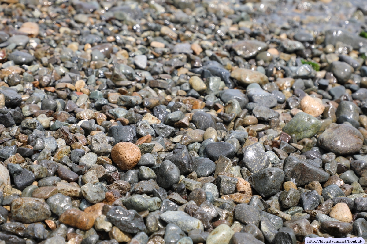 한여름 뜨겁게 달궈진 이런 몽돌을 밟는 재미도 제법 좋겠다.