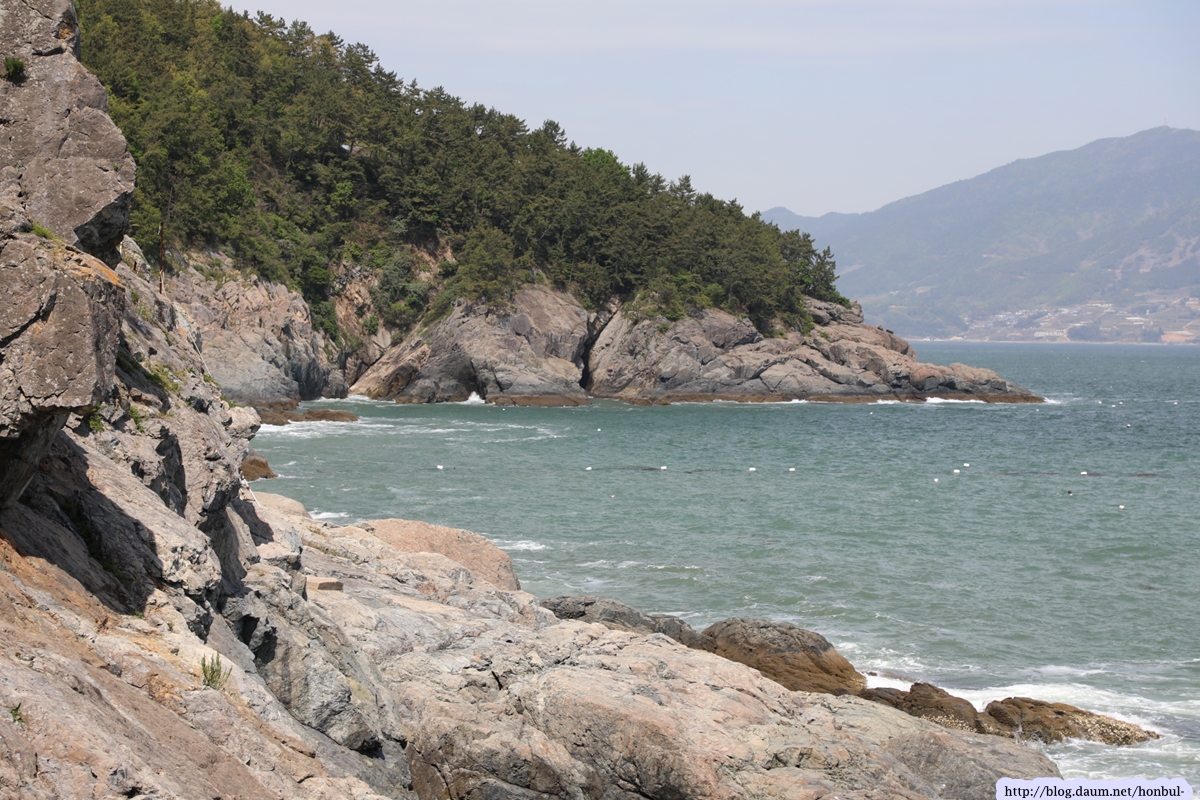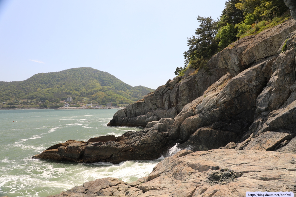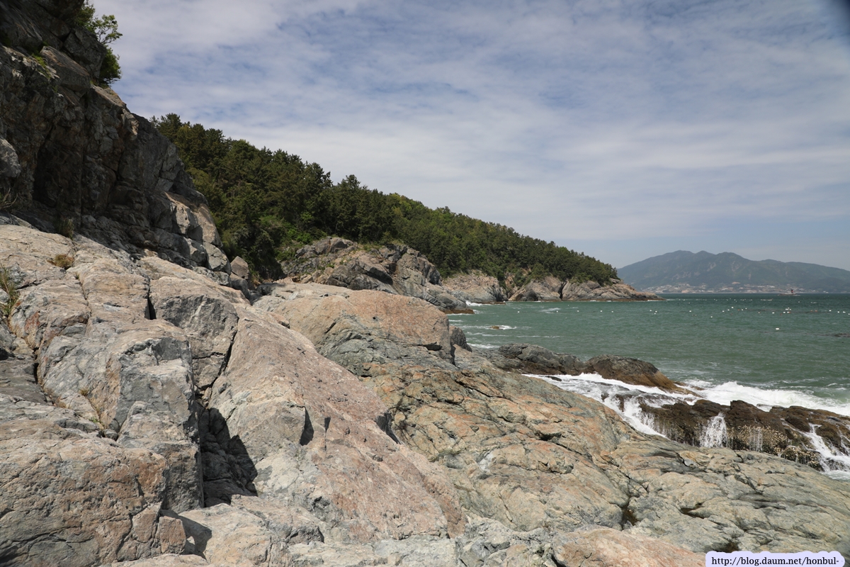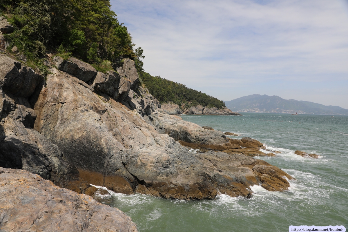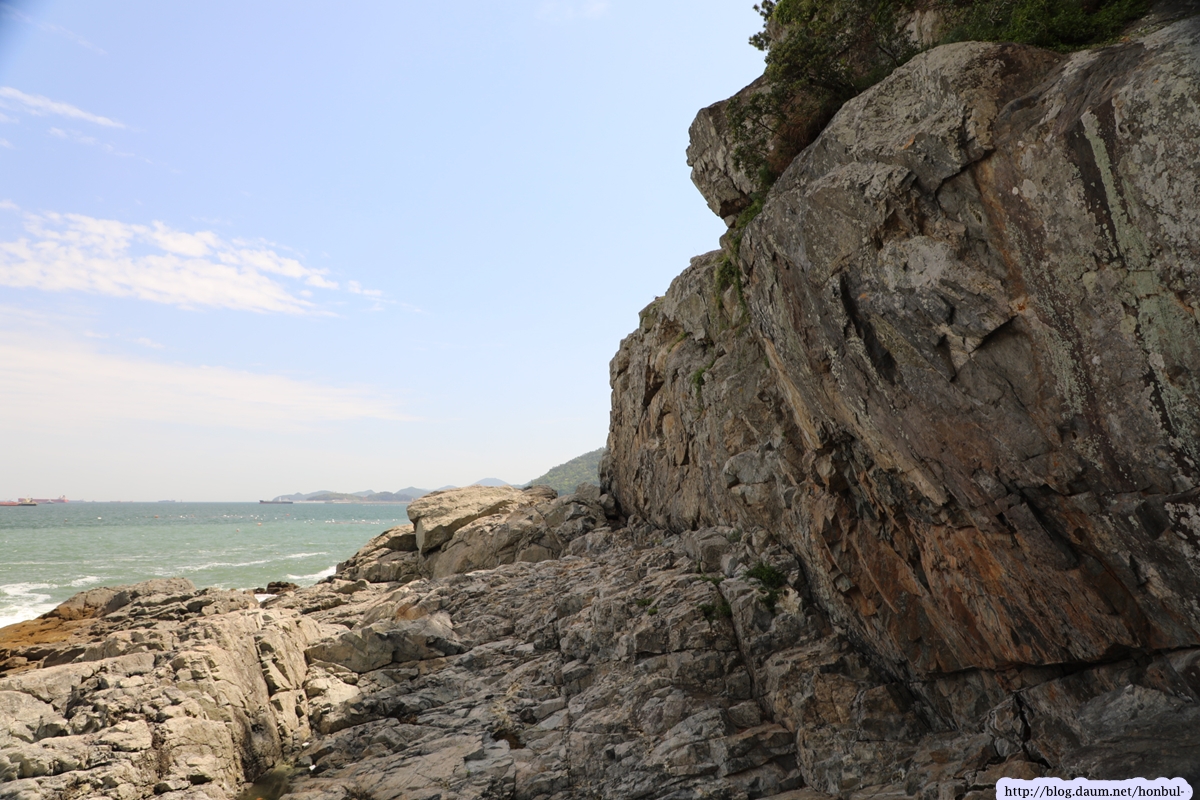 몽돌해변이 끝나고 갯바위로 연결된 해변을 걷는다.