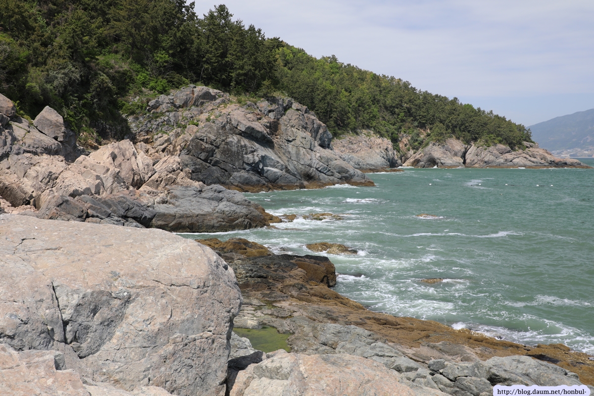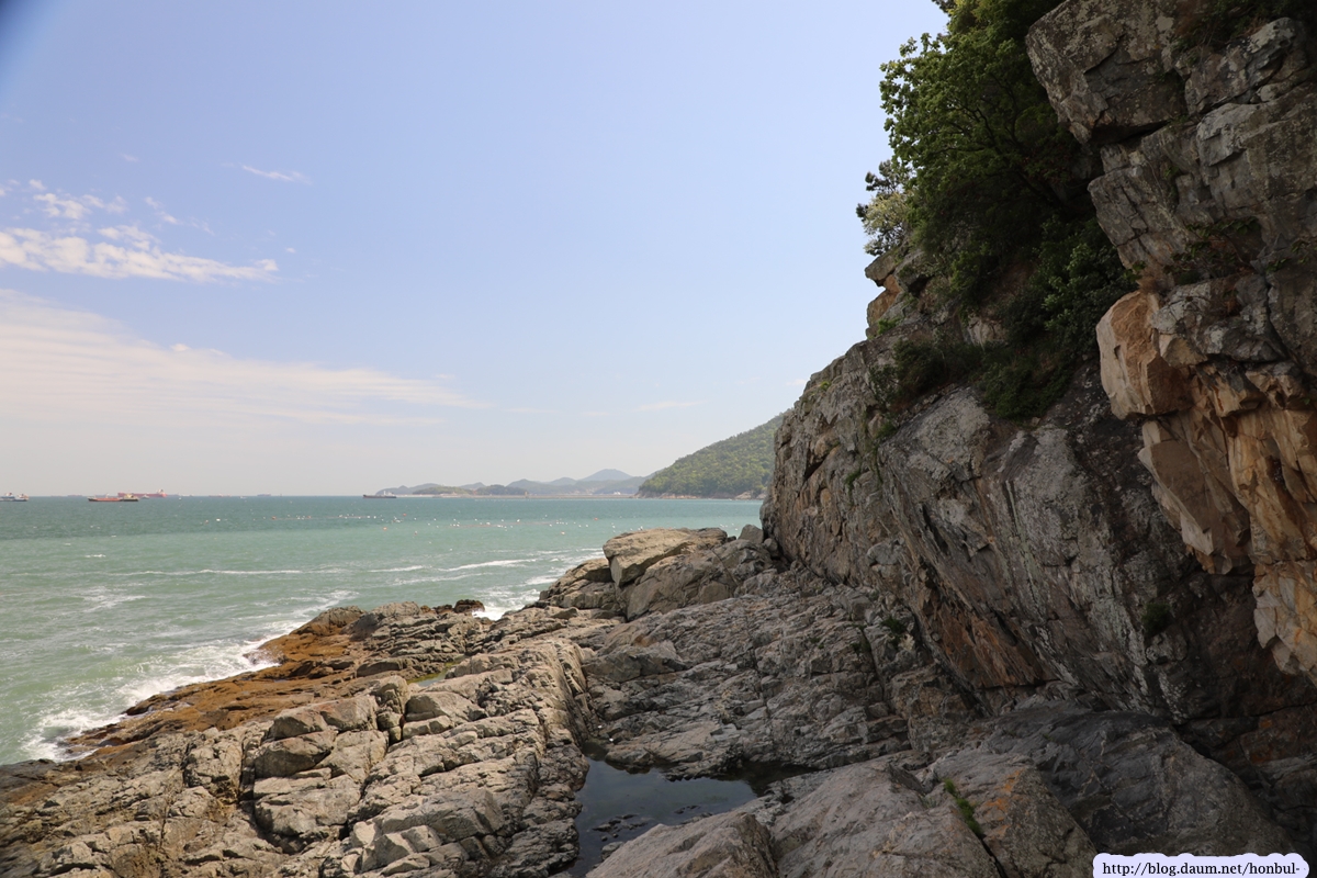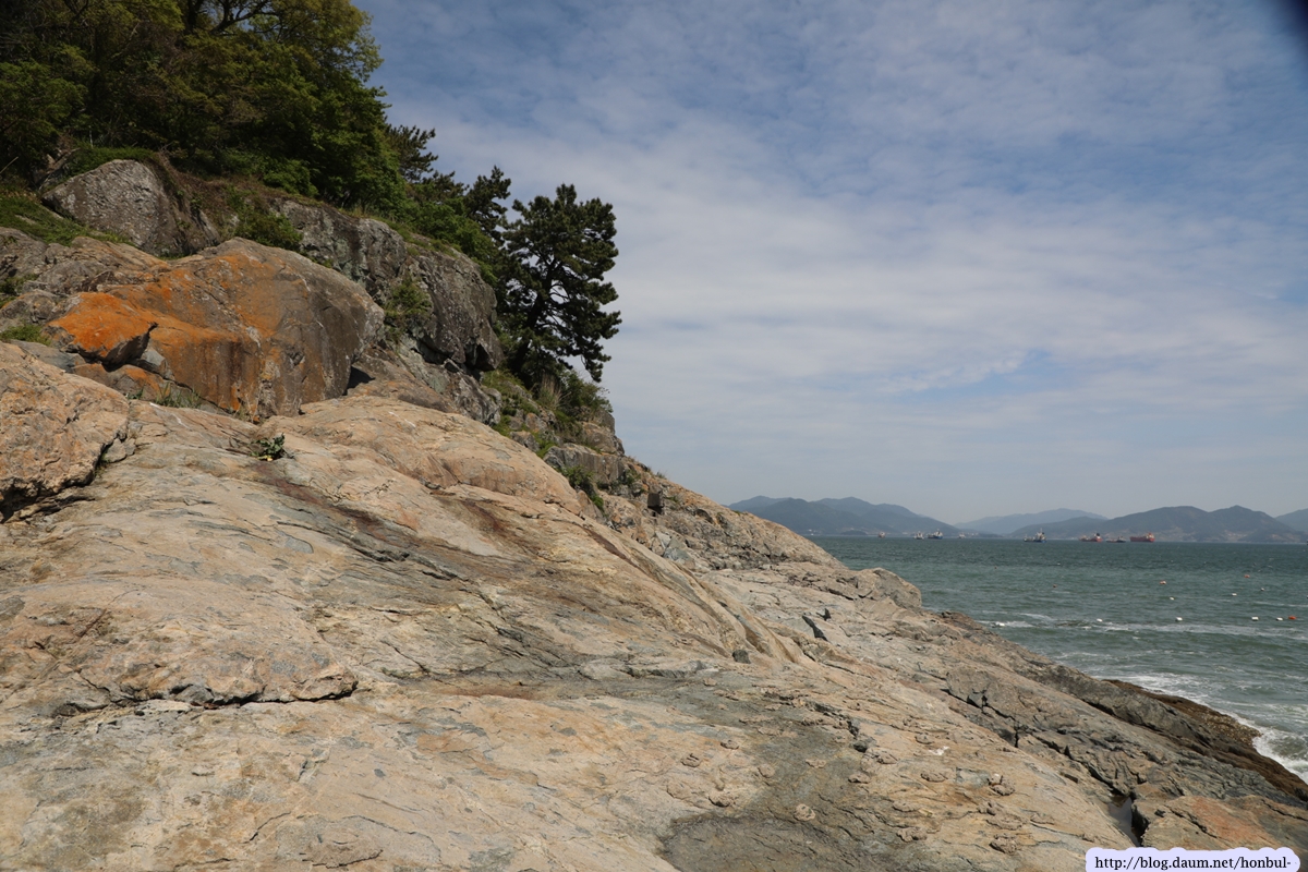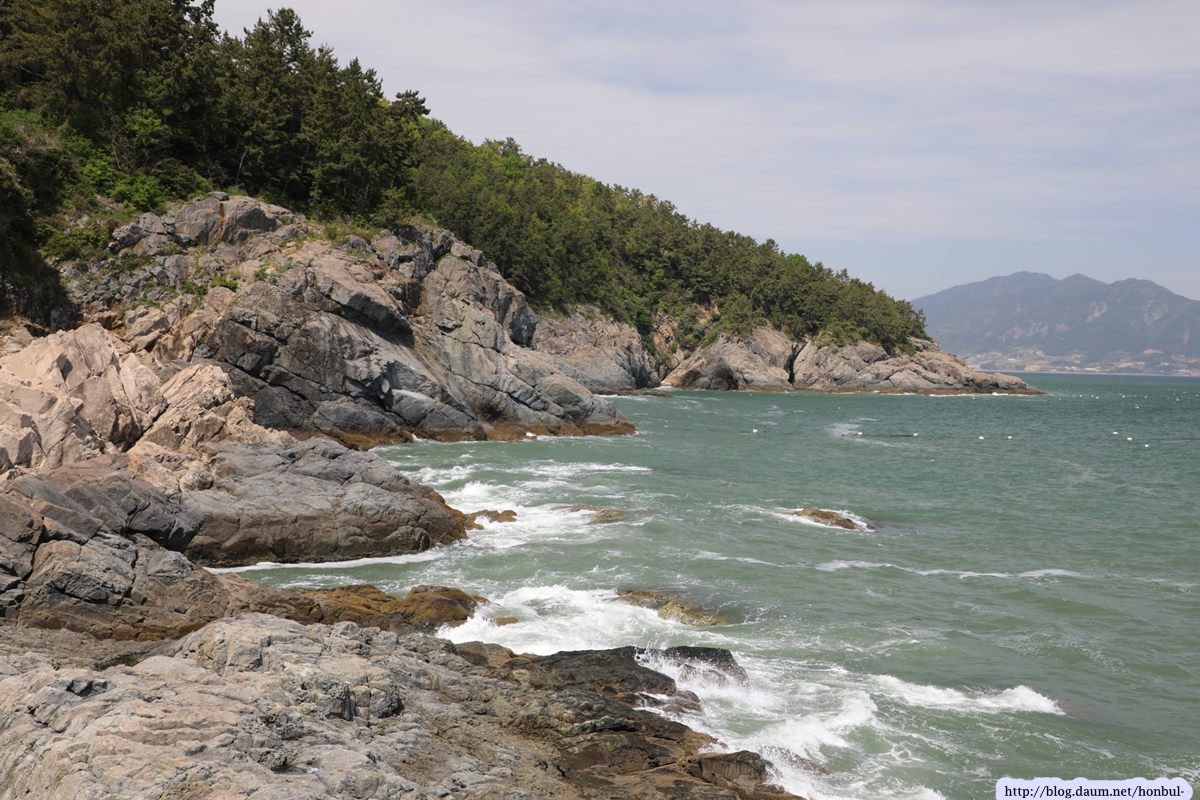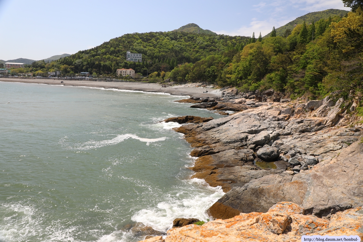 몽돌해변이 끝나고 갯바위로 연결된 해변을 걷는다.