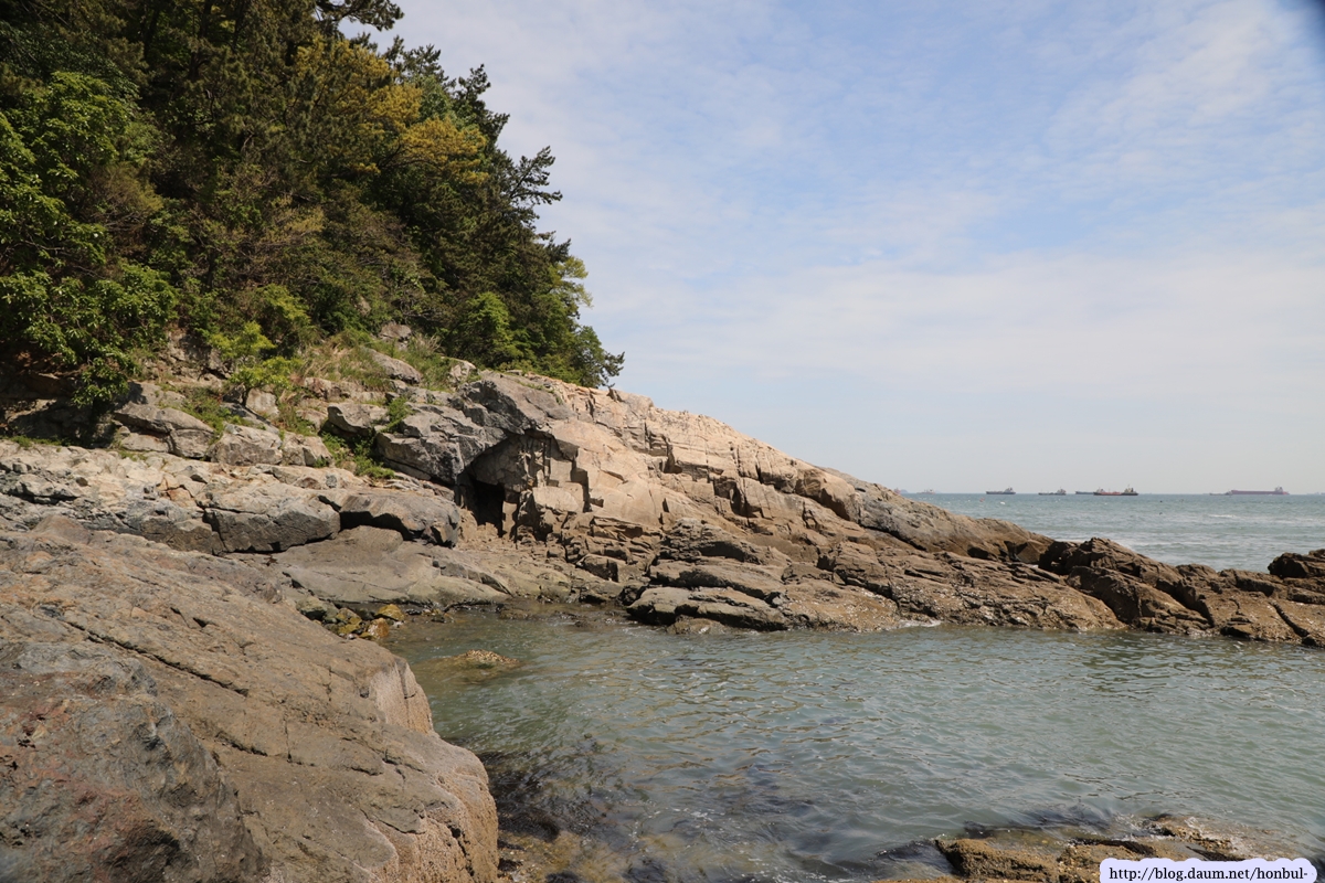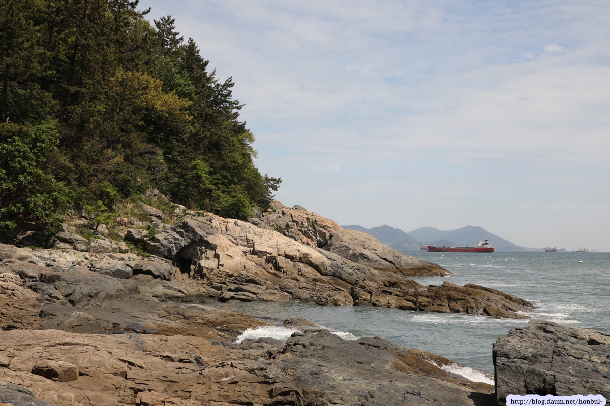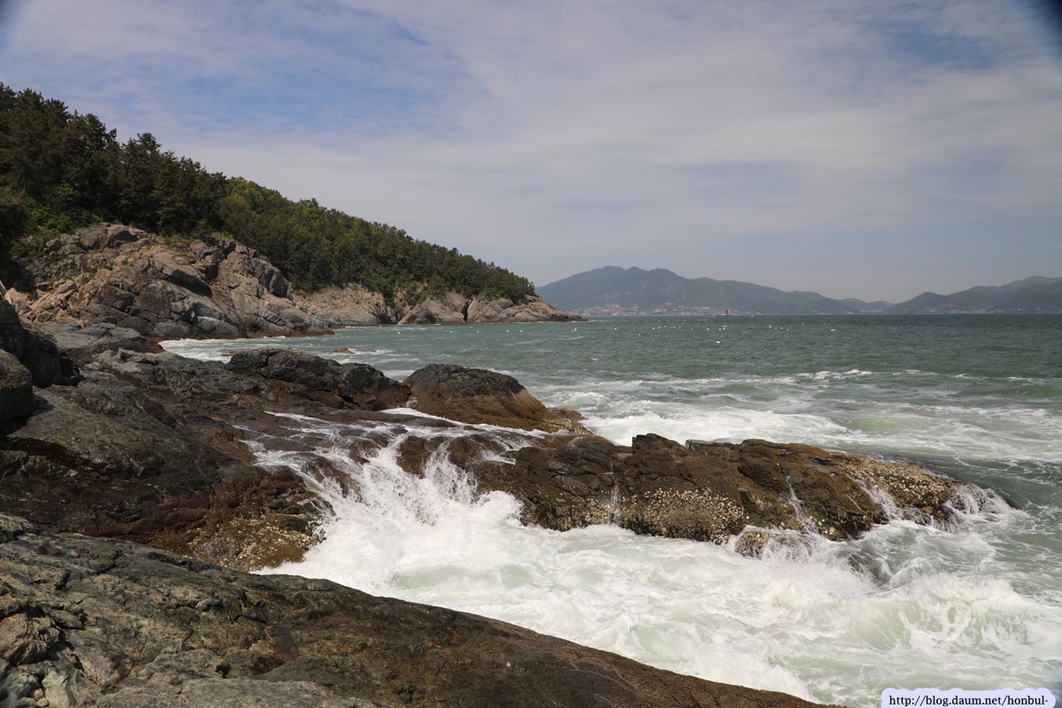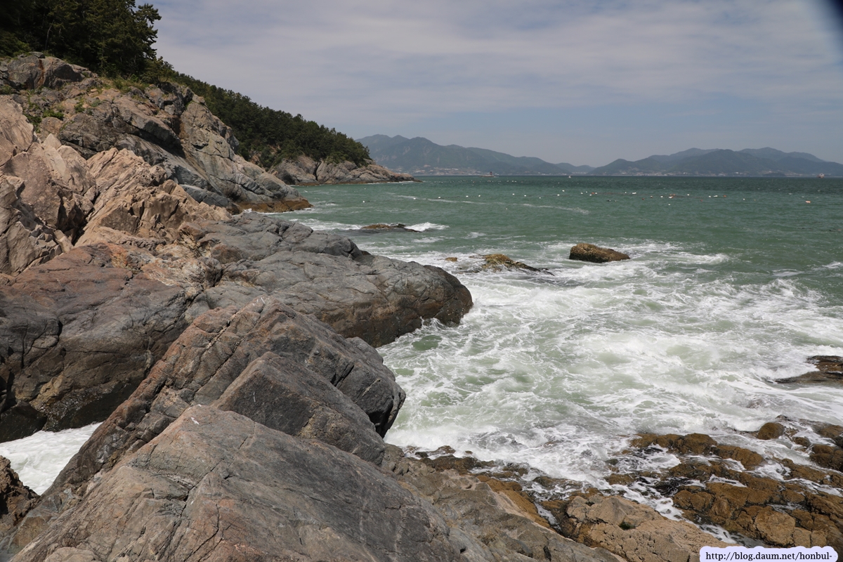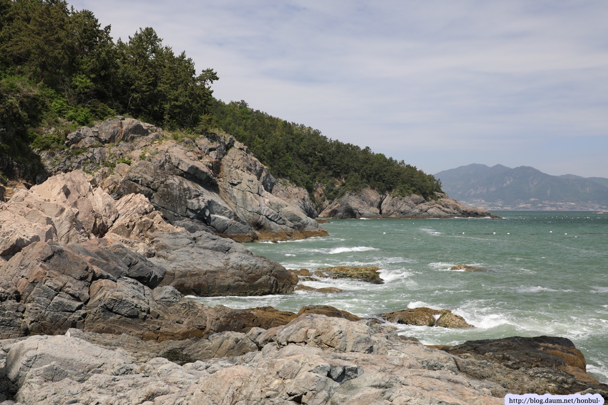 몽돌해변이 끝나고 갯바위로 연결된 해변을 걷는다.