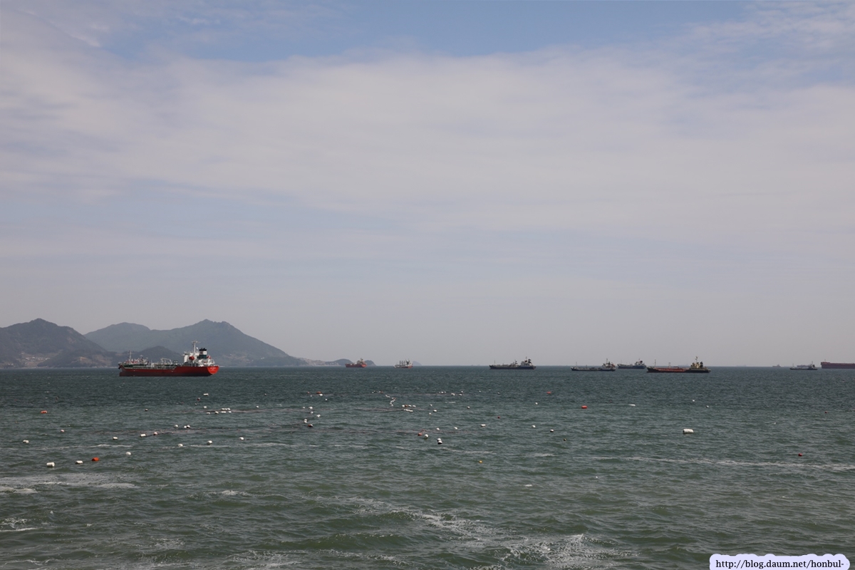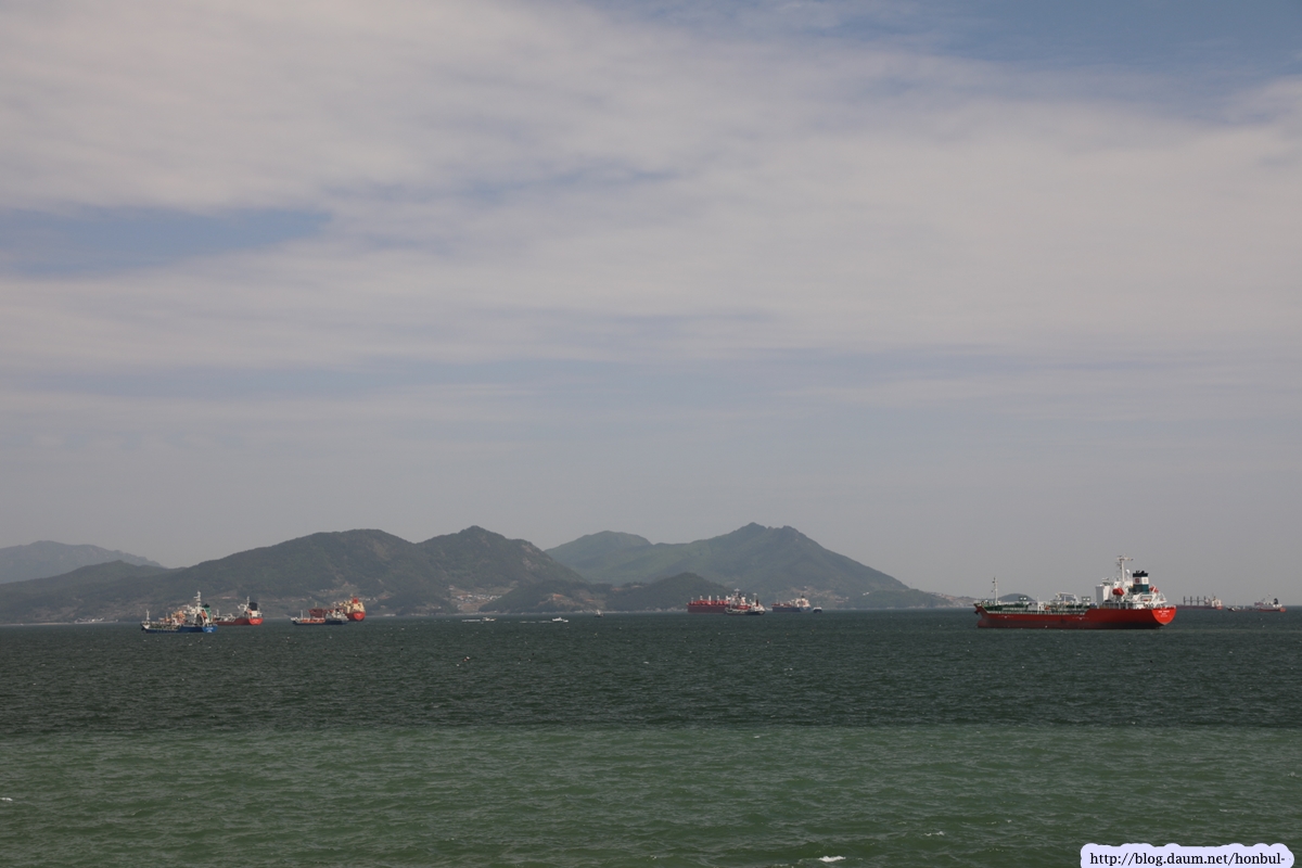 여수 앞바다는 늘 선박들이 끝없이 늘어서 있다.