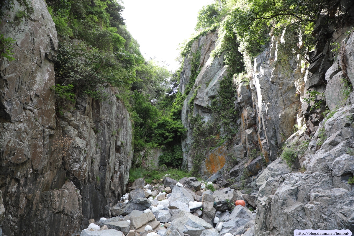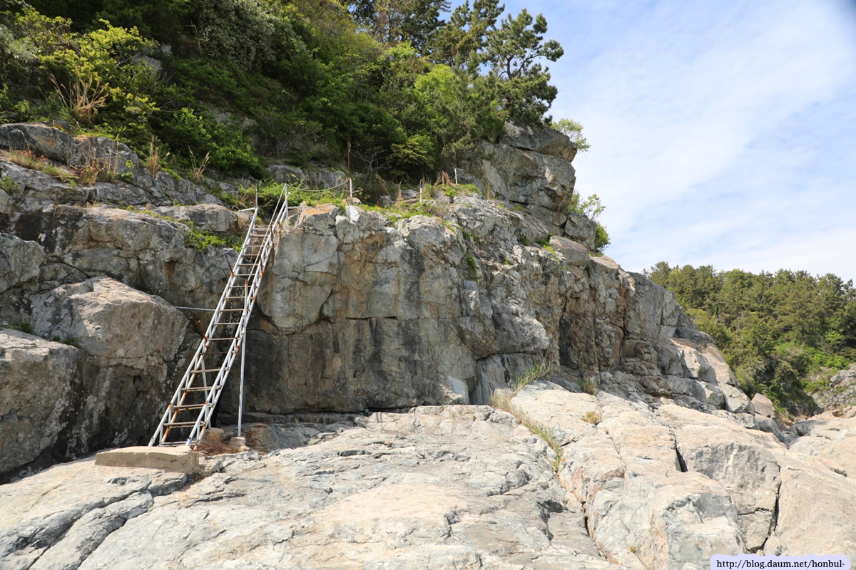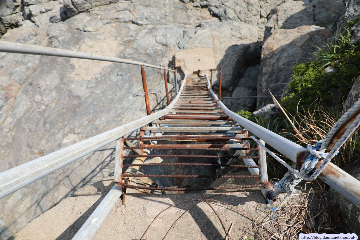 멋 모르고 내려갔으나 해안으로 내려가는 길은 가파른 바위 절벽이다.