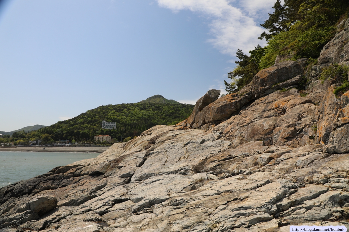 해식애 해변 탐방을 마치고 해수욕장을 걸으며 바위가 멋진 산으로 갈 생각이다.