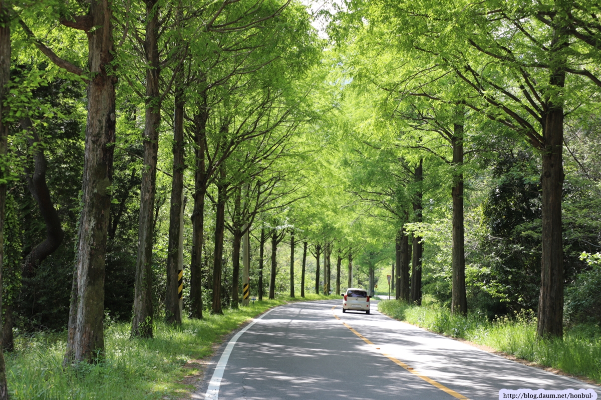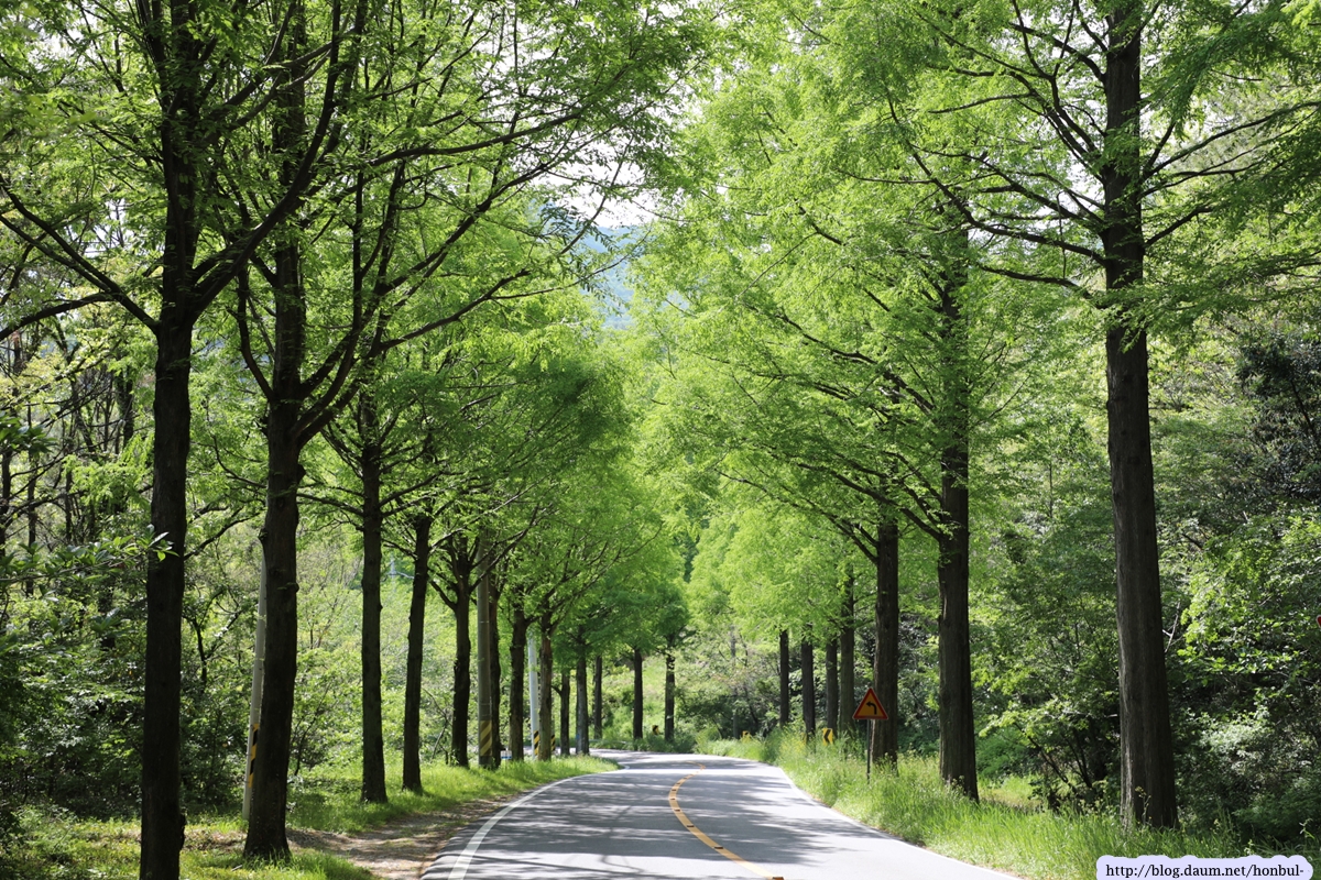 도로를 따라 내려가는 데, 메타세쿼이아 나무가 기가 막히게 예쁘다.