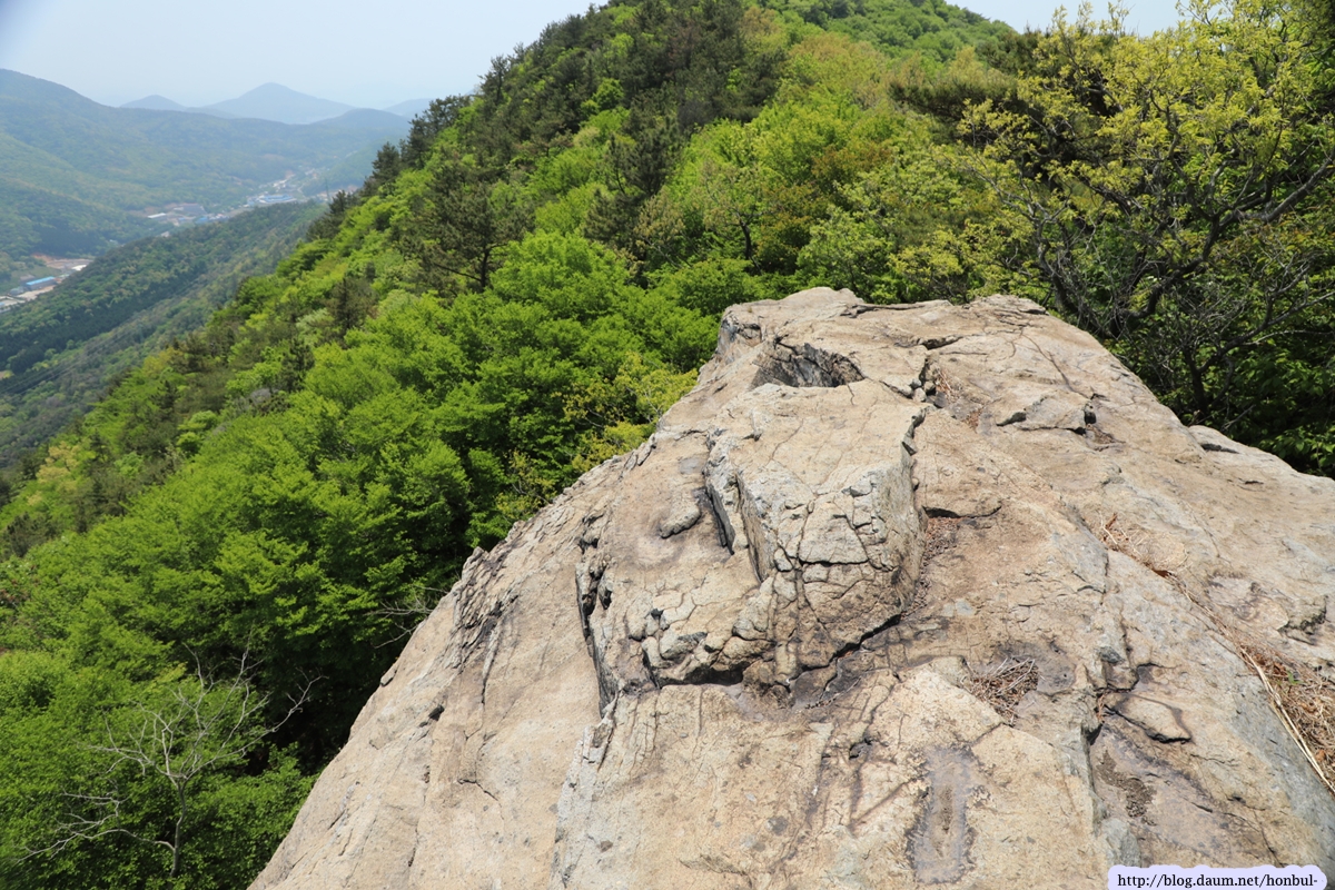 봉화산에서 내려오다 호랑산 우측의 영취산 암릉에 눈이 갔다.