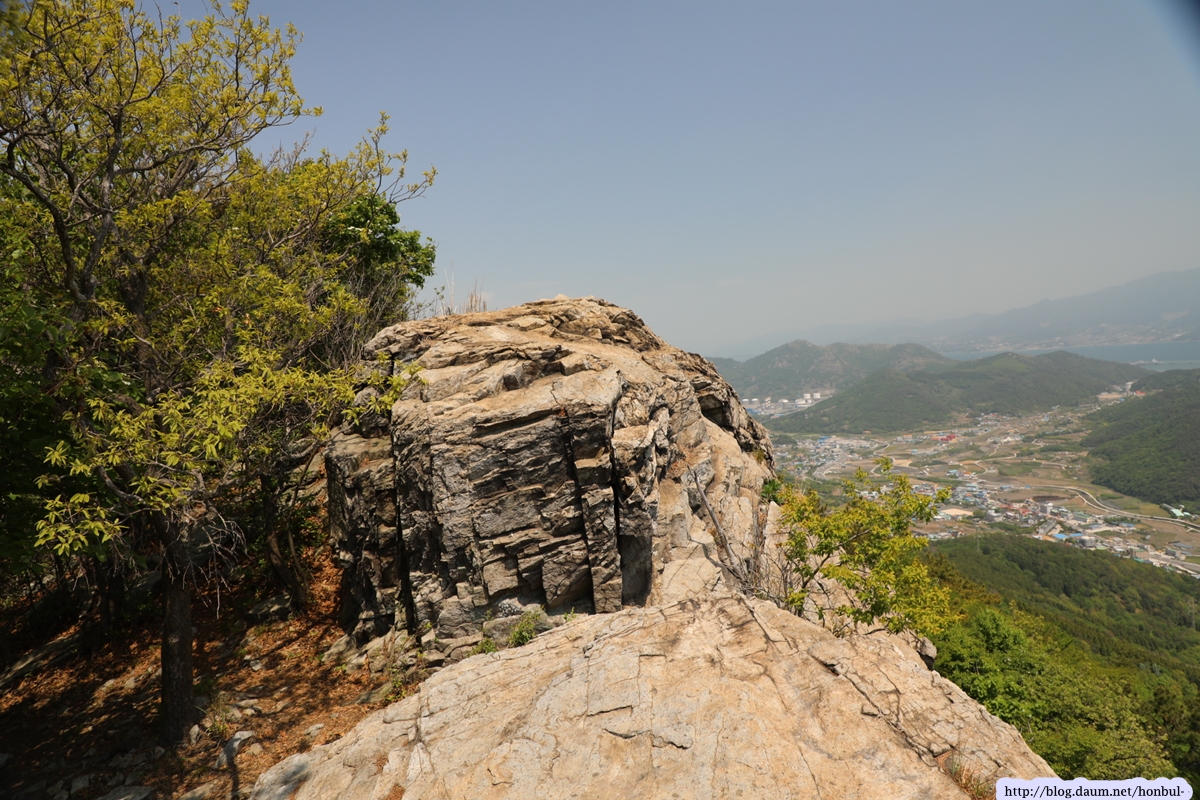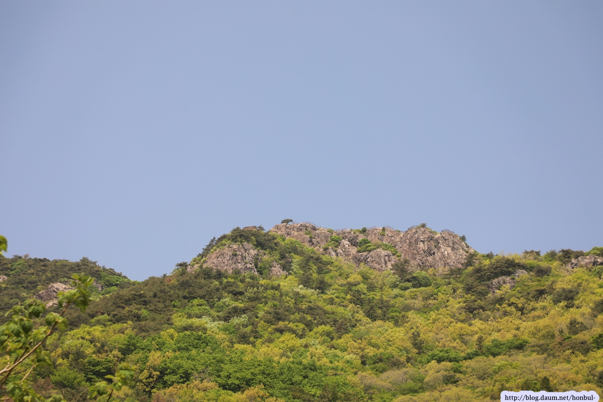 호랑산 우측의 바위산은 지난주에 다녀온 영취산이다.