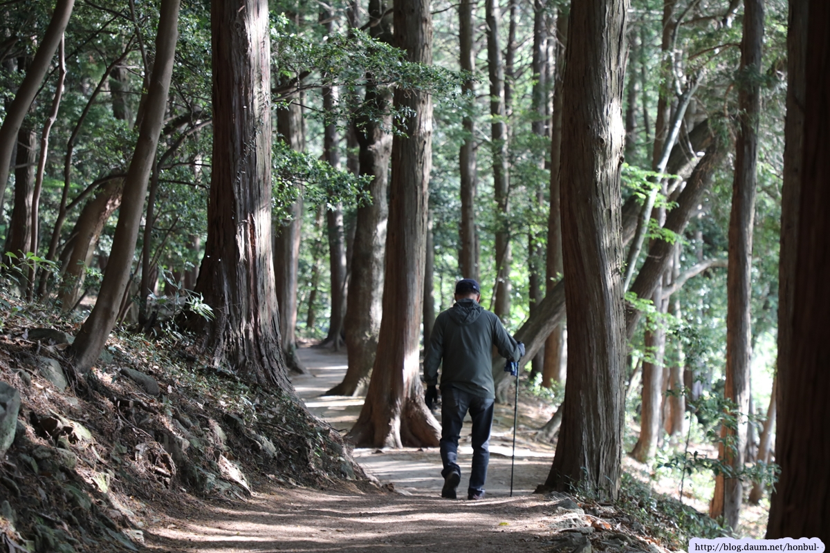 편백나무 숲이 우거져 아침 기운이 상쾌하게 느껴진다.