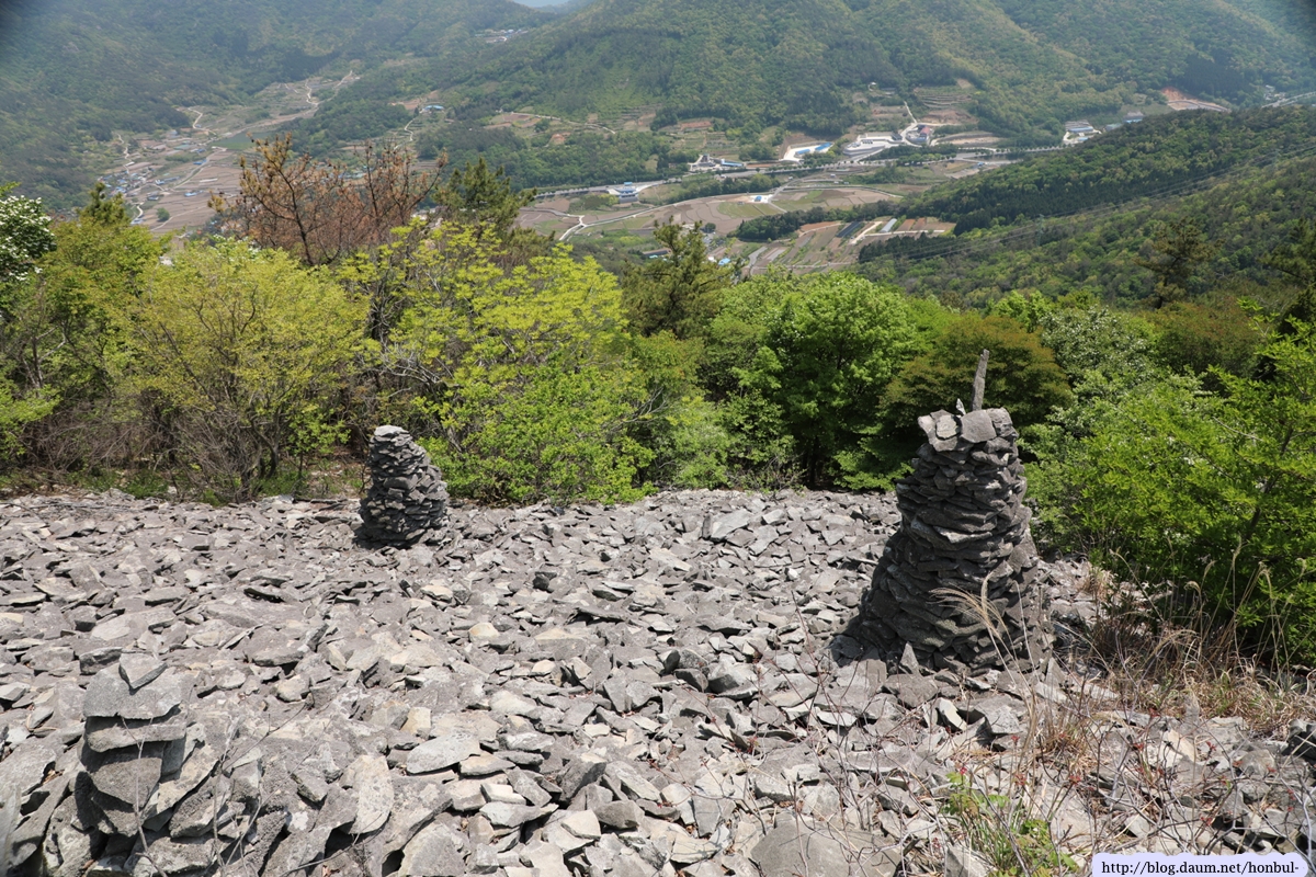영취봉 아래쪽에도 봉화산처럼 여러 돌탑이 세워졌다.
