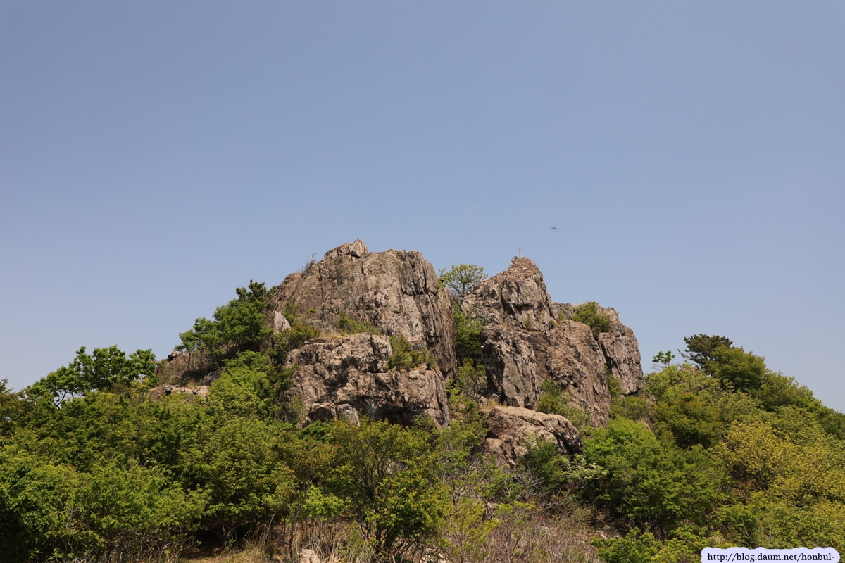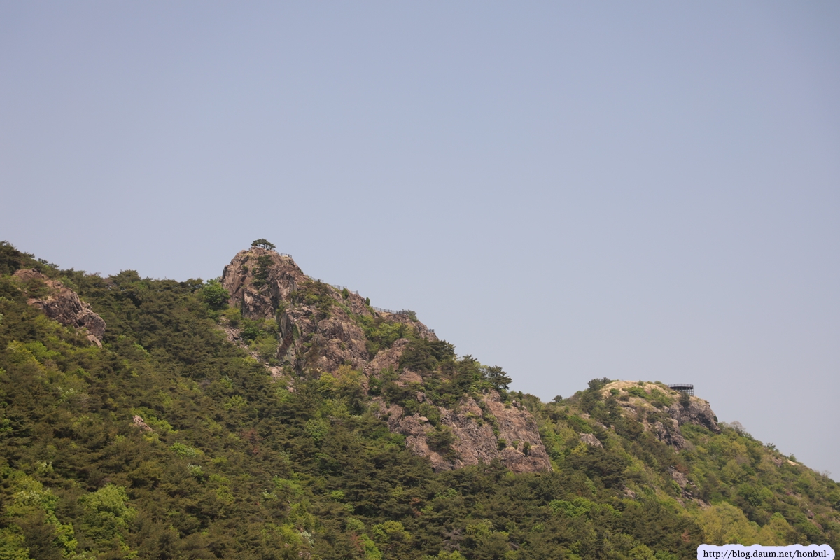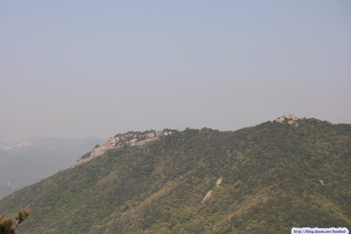 이 돌탑에서 본 건너편 호랑산을 암릉이 멋지다.