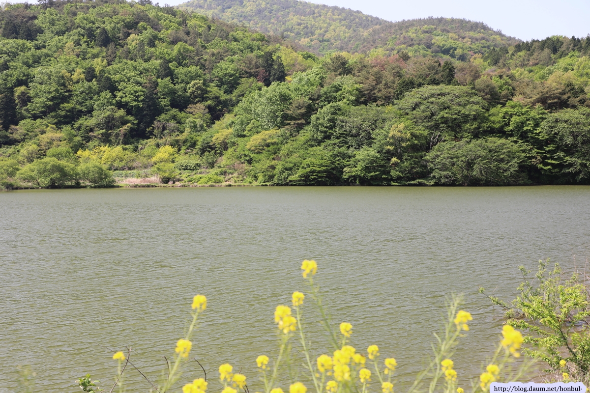 미평 저수지 주변의 탐방로는 상쾌한 기분으로 걷는다.