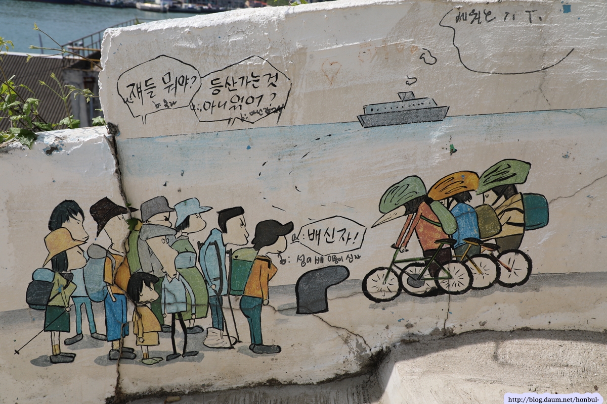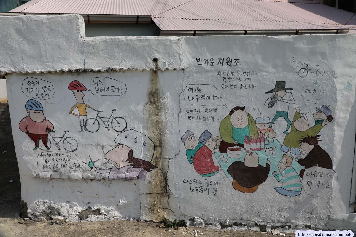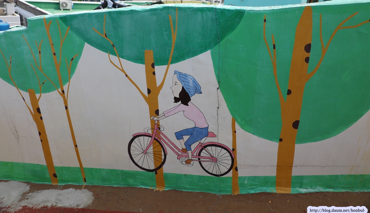 너저분하고 보기 싫은 입간판보다 이런 벽화 광고가 훨씬 보기 좋다.