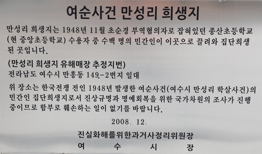 마래터널을 보고 나오는 길에 이 근방이 여순사건의 희생자가 생기고 안치된 지역이라는 걸 알았다.