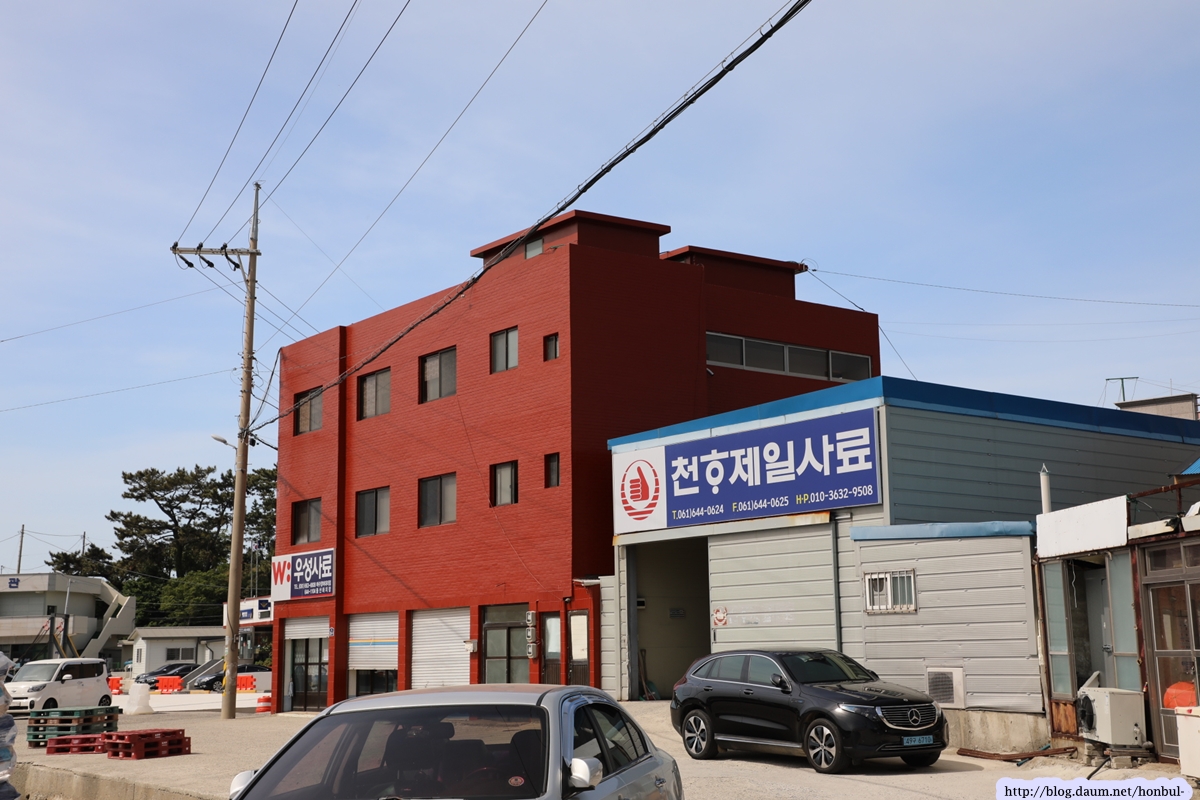 조그만 읍소재에 사료 도소매점이 많다고 생각했더니 물고기 양식장에 사료를 파는 곳이다.