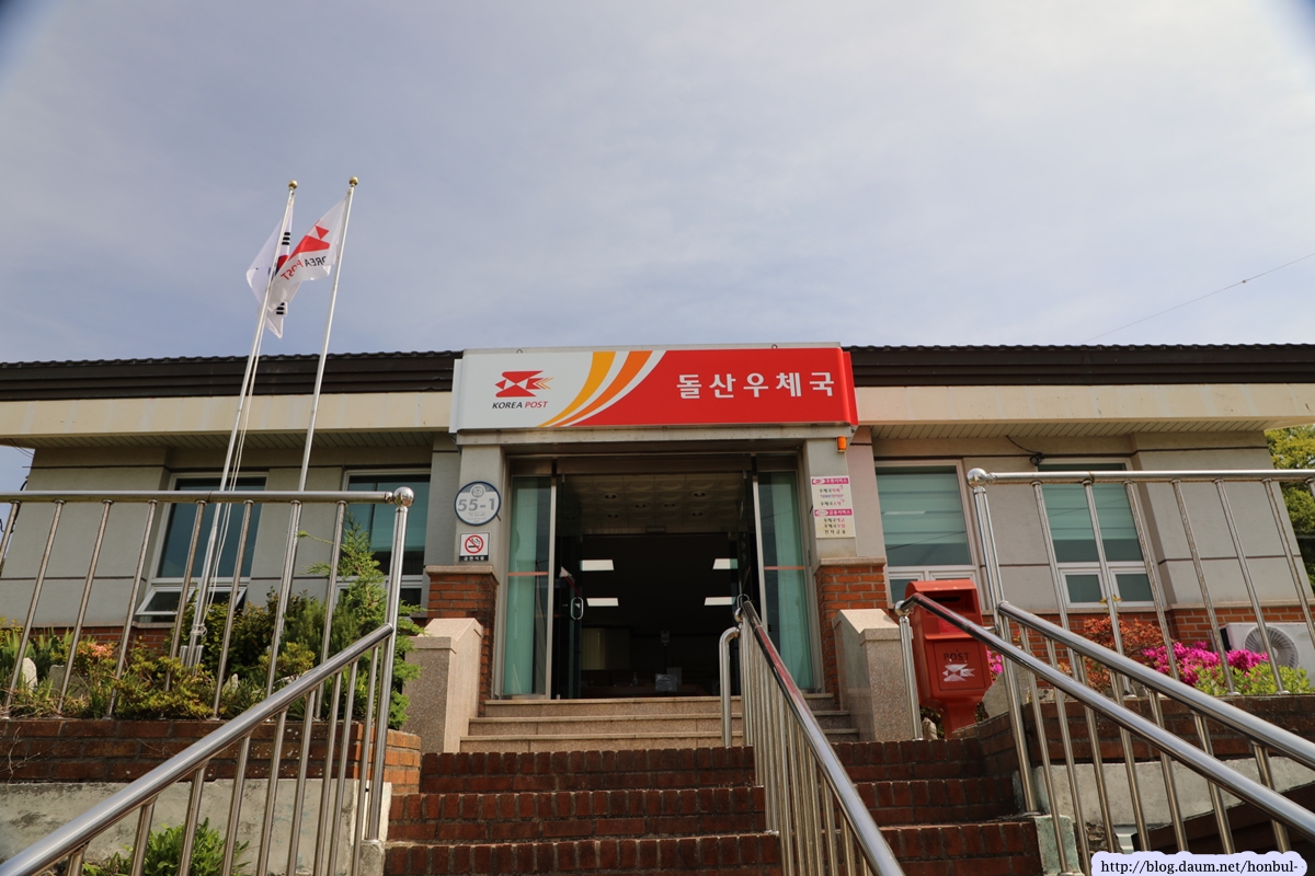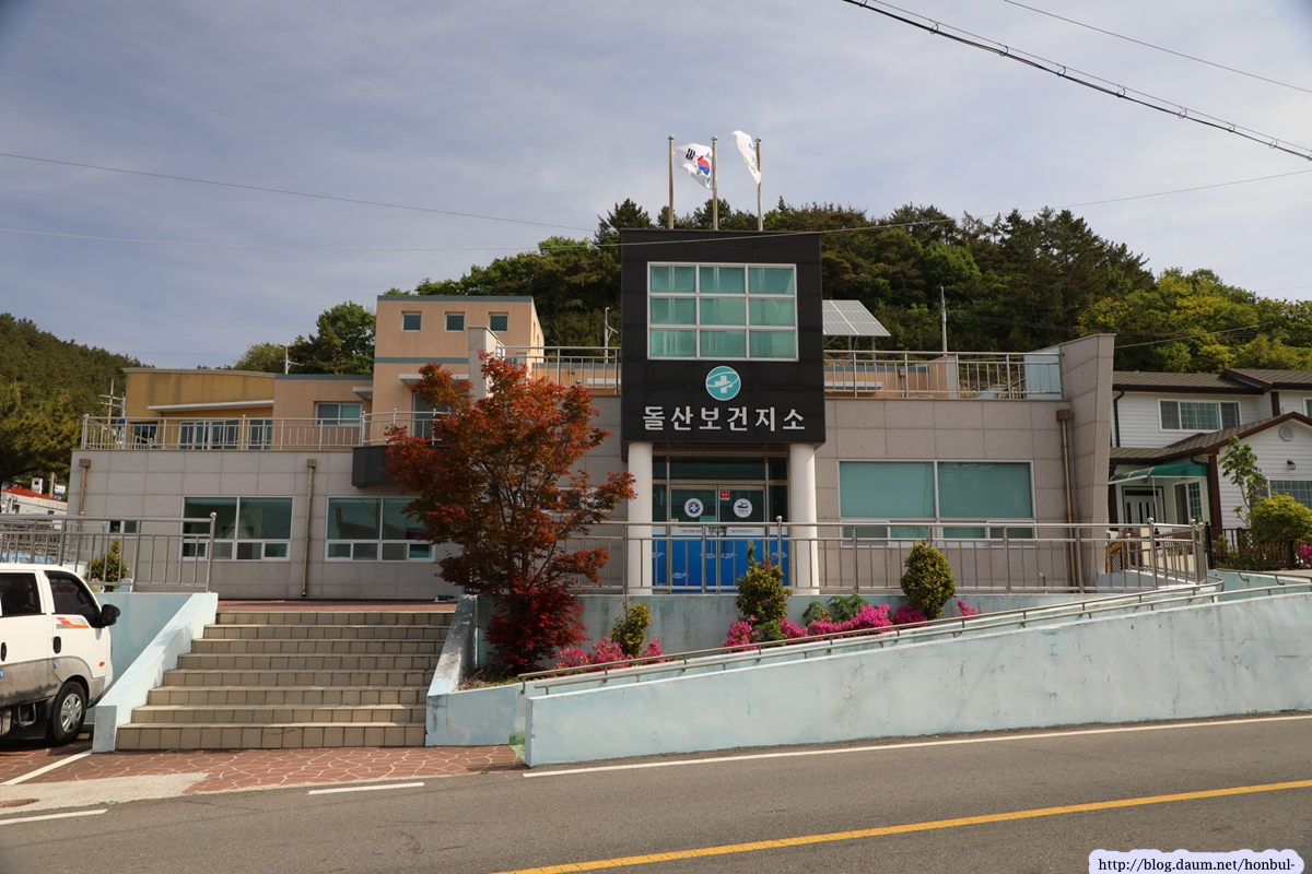 돌산 보건소는 도로변에 있고, 우체국은 보건진료소 담장을 끼고 뒤쪽에 있다.