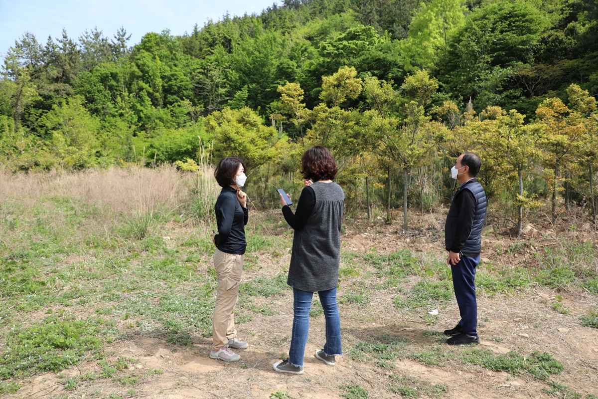 봉황산 입구의 세 필지 땅인데, 자잘한 돌이 많고 집을 지으려면 북향이다.