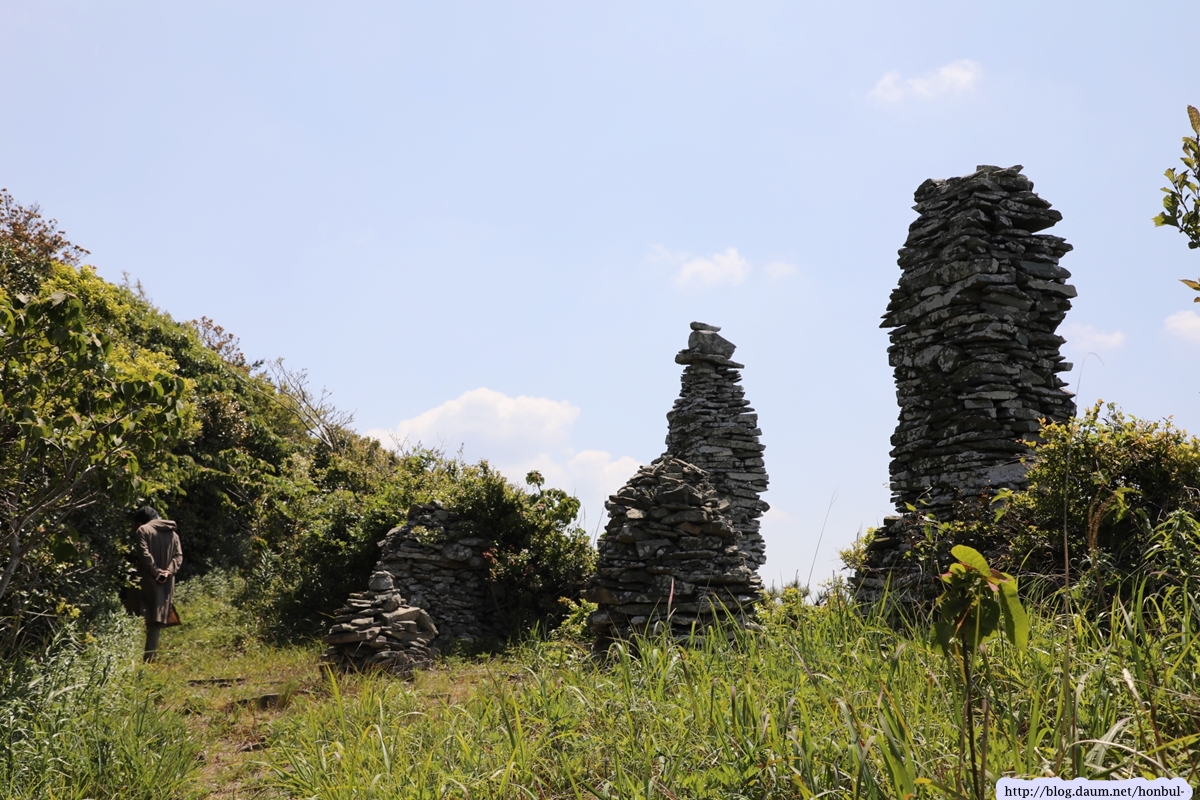 이곳엔 박석 부스러기가 많아 이런 돌탑 쌓는 재료는 널려 있다.