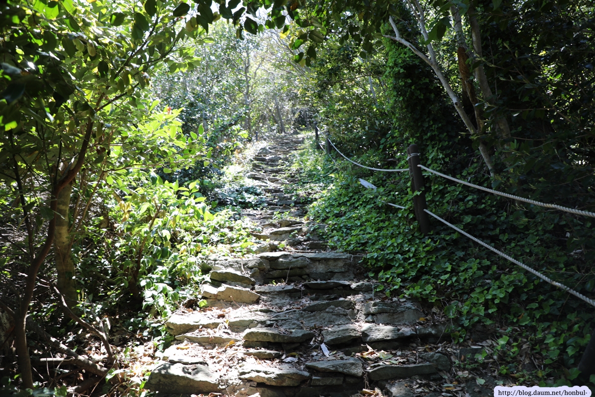 산에 돌이 많아 전부 돌로 만든 계단이다.
