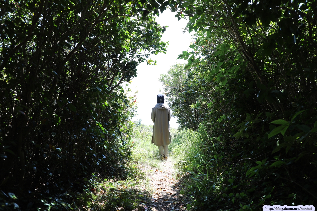 거문도 등대 입구는 이렇게 나무가 맞닿아 문처럼 되었다.